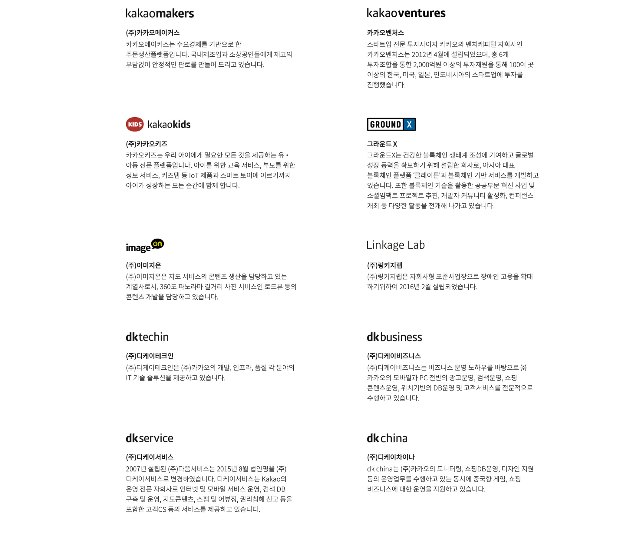 카카오 홈페이지에 가면 훨씬 더 많은 카카오 자회사가 있다는 것을 알수 있습니다.