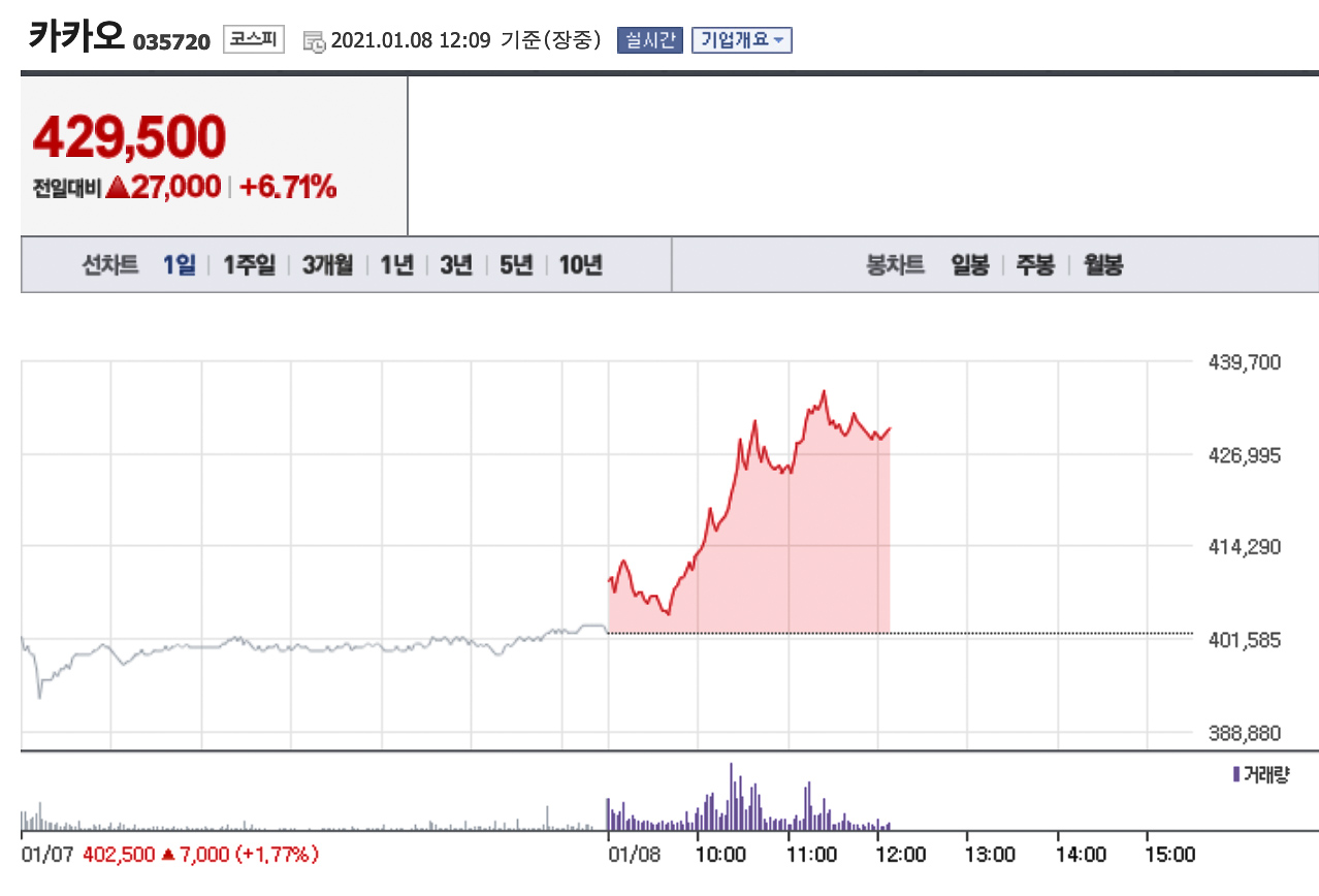 한국 내에서는 네이버와 함께 아주 높이 상승할 여력이 있지만,