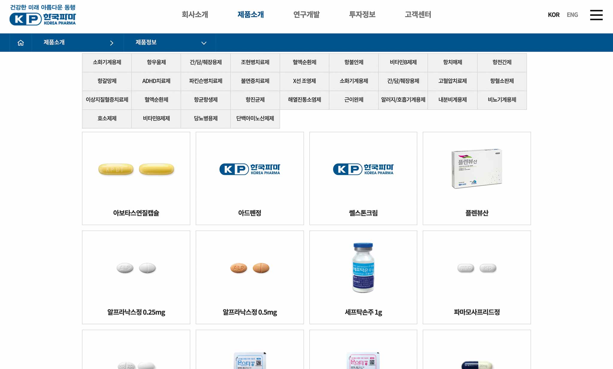 자체적으로 R&D 개발을 통해서 정신신경계, 소화기계, 항생항균, 순환기계 등 제조에 강점이 있는 기업으로