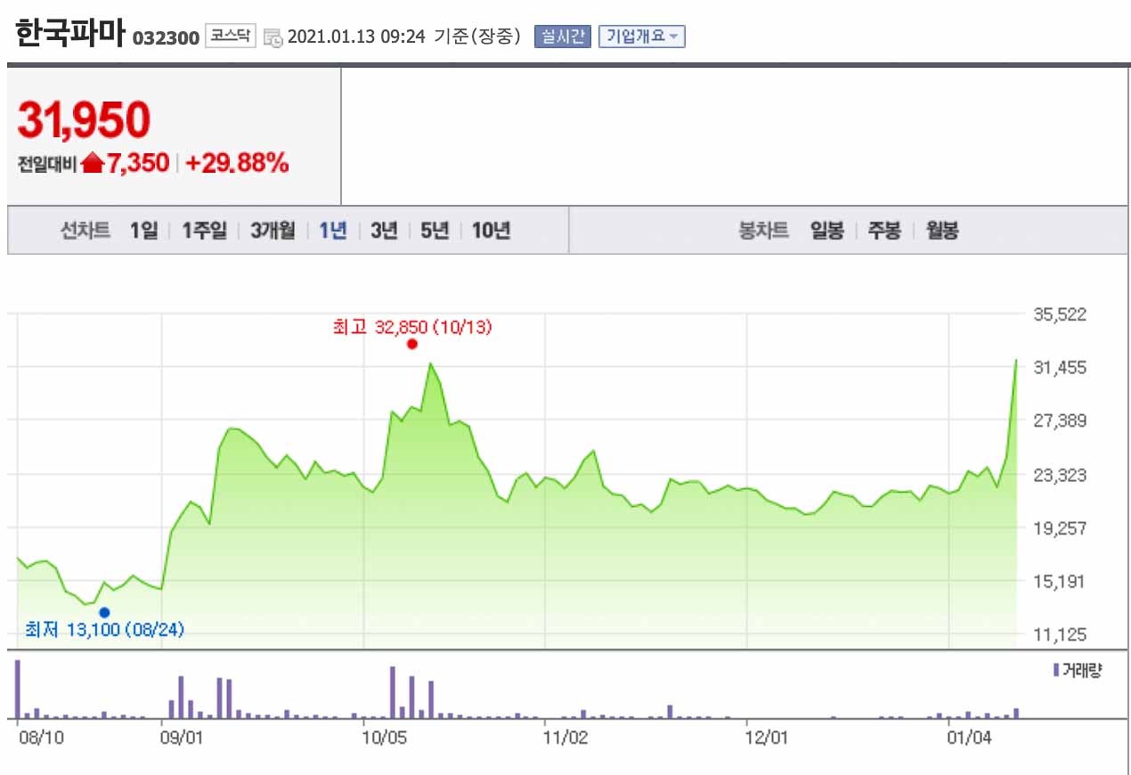 2020년 8월에 상장한 한국파마는 크게 주목받지 못하고 있었습니다.