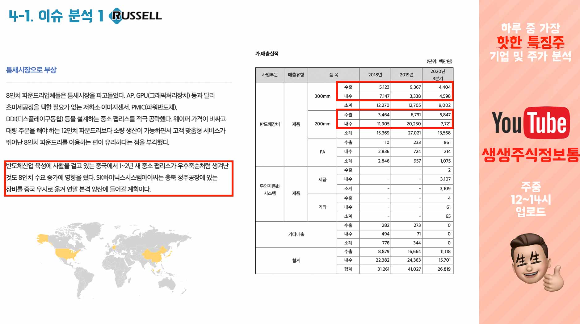 상품별 매출을 보면, 12인치 파운드리 반도체 기계를 통해 전체 매출 중 33%의 매출을 일으키고 있고