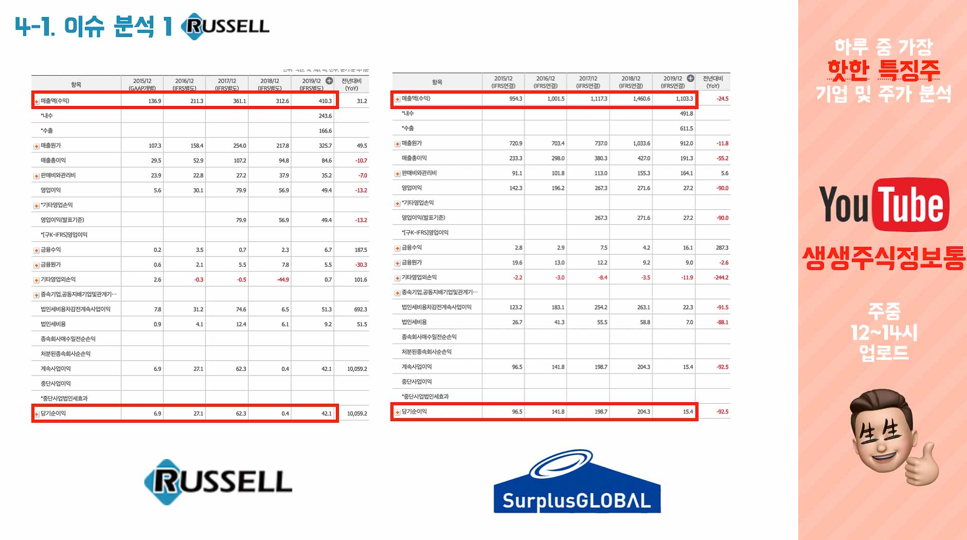 서플러스글로벌과 러셀의 매출액 비교입니다.
