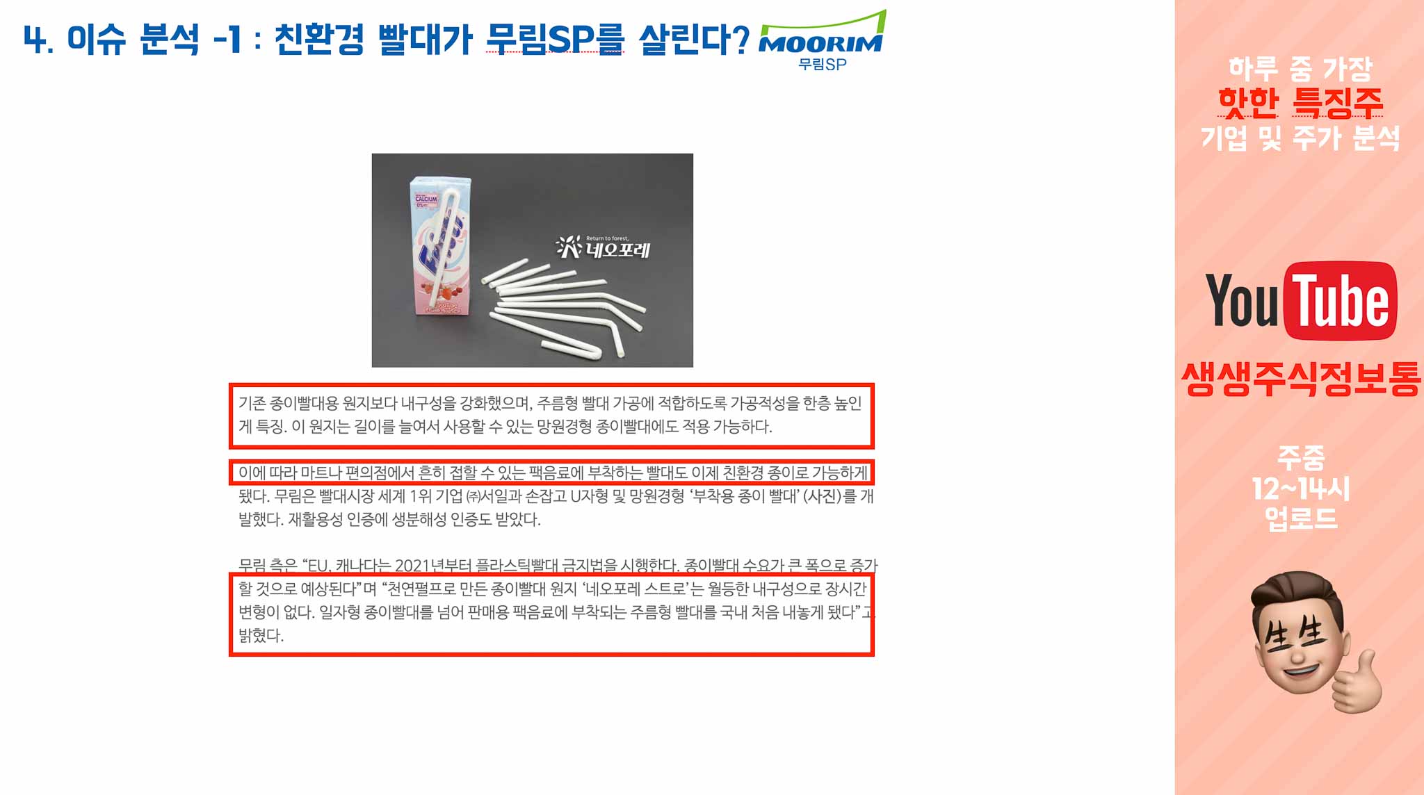 첫번째는 12월 첫째주로, 무림이 서일과 함께 친환경 종이 빨대를 만들었다고 해서 이슈가 됐던 떄입니다.