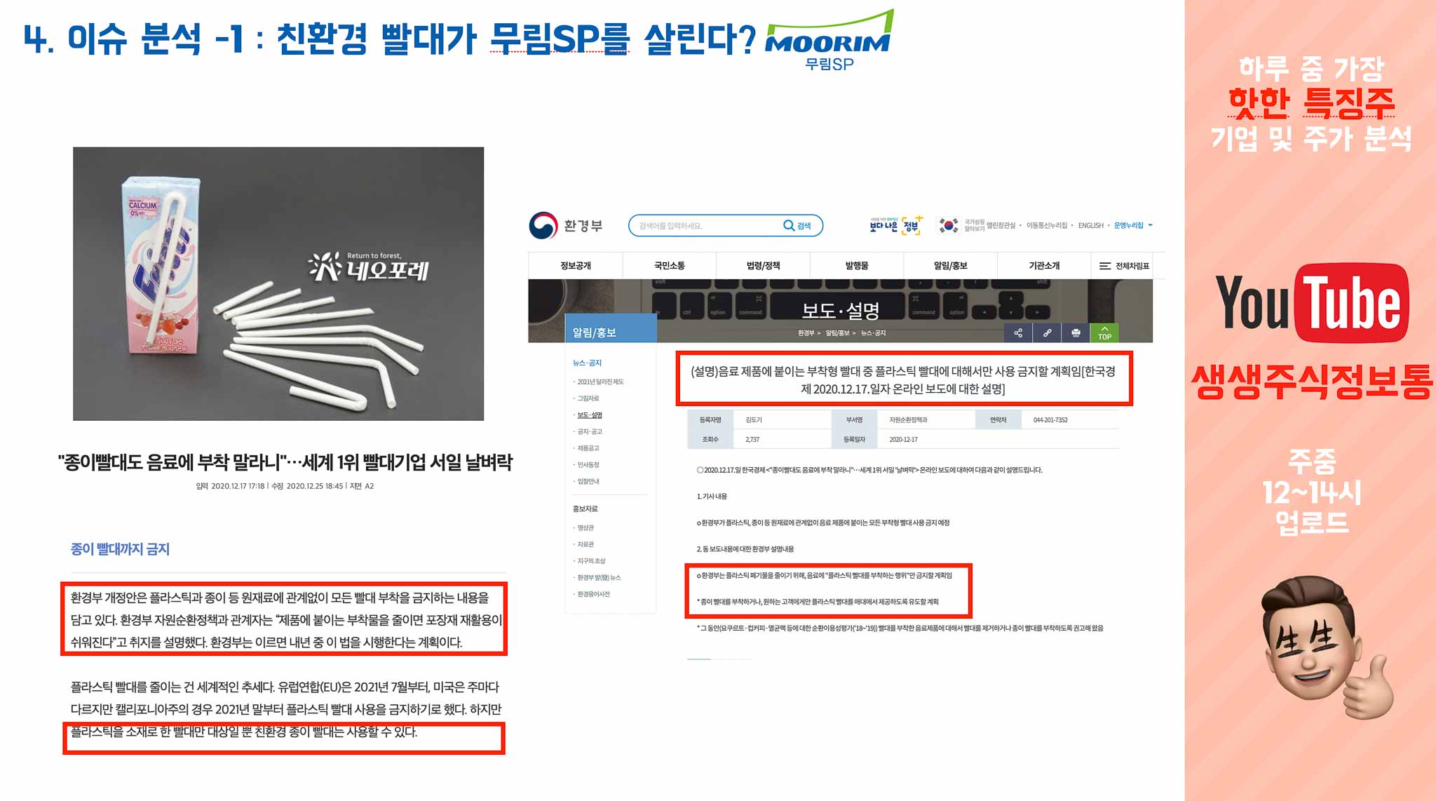 하지만 2020년 12월 8일, 무림과 서일의 친환경 U자형 빨대 소식이 나오고, 환경부 소식도 들려왔습니다.