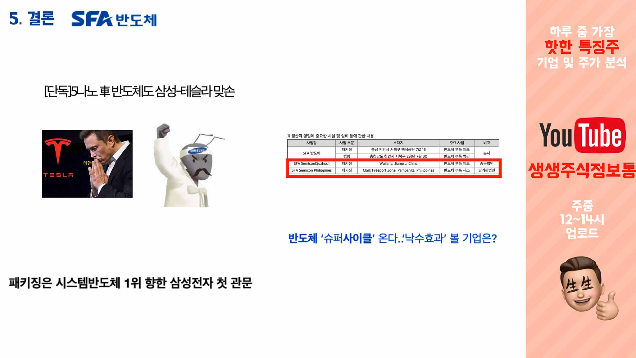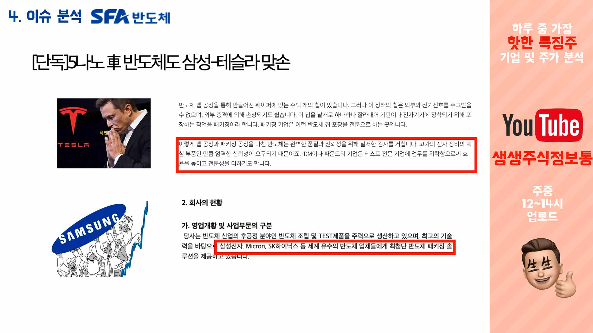 4. 이슈분석 : 테슬라 - 삼성의 반도체 협업은 SFA반도체도 날아가게한다?