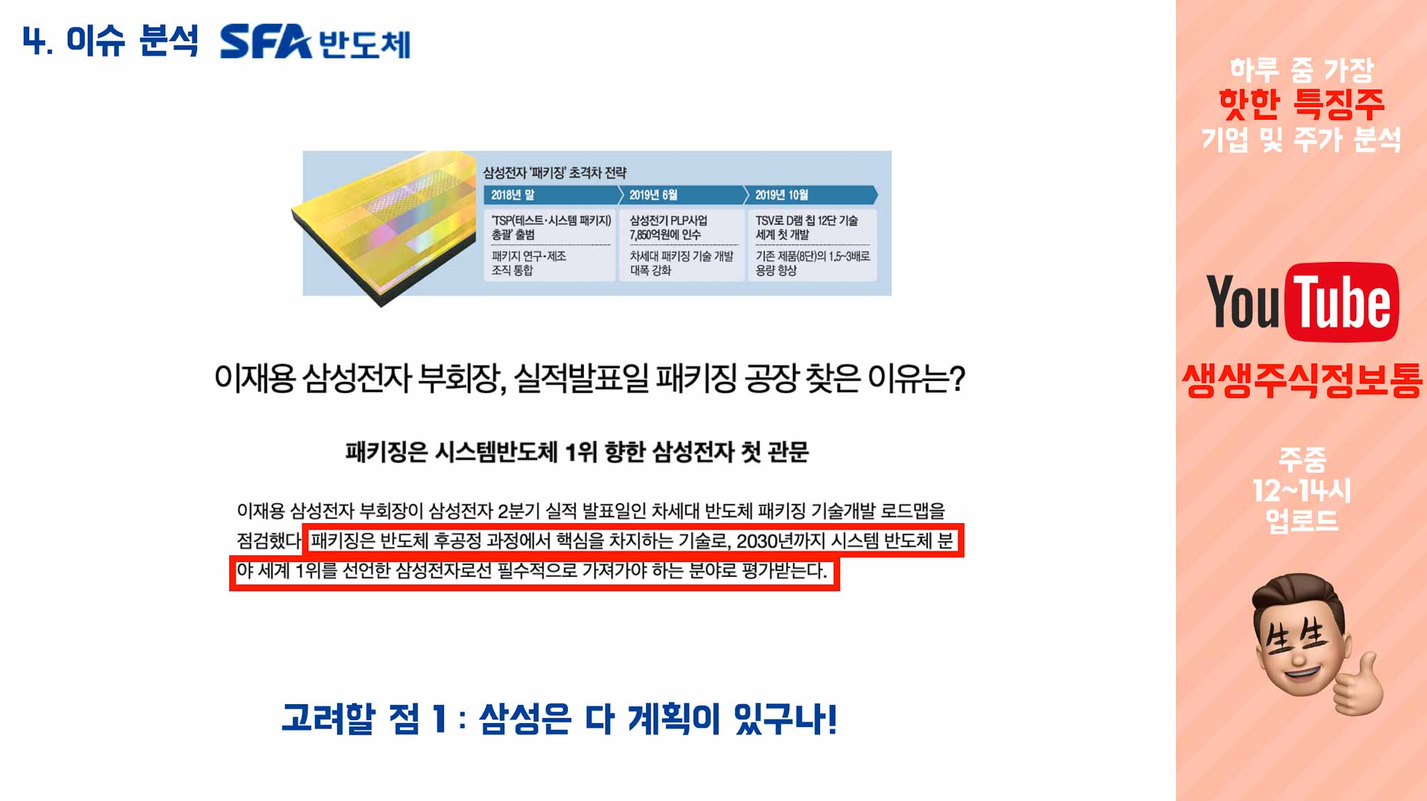 그리고 SFA반도체가 삼성전자의 메모리반도체 패키징을 외주받던 기업이라는 소식이 들리며,
