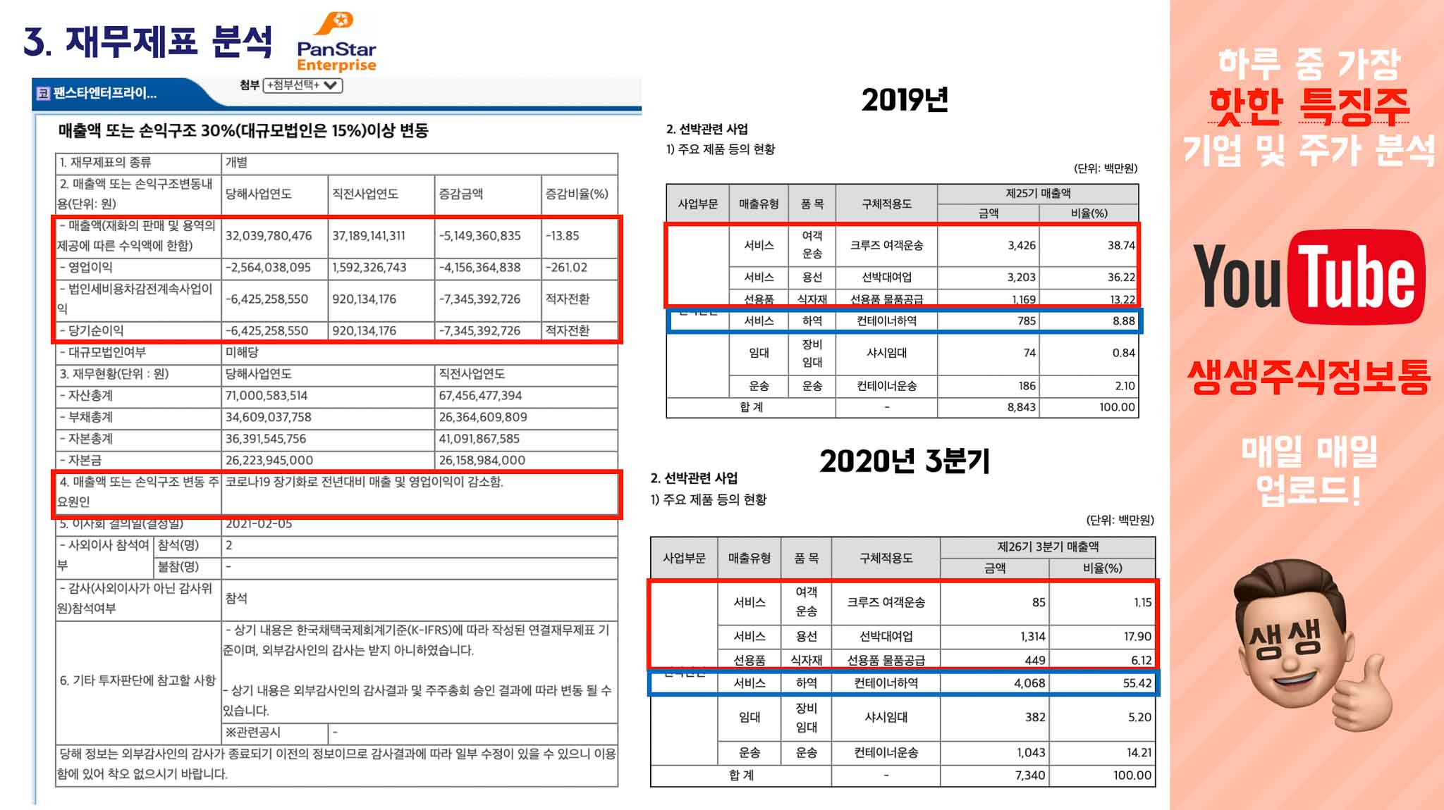 팬스타엔터는 컨테이너 하역을 열심히 하지 않았습니다. 2019년에는 7억8천만원 매출이었습니다만, 2020년에는 여객 운송 못하니 컨테이너하역에 집중해 40억 매출을 일으켰습니다.