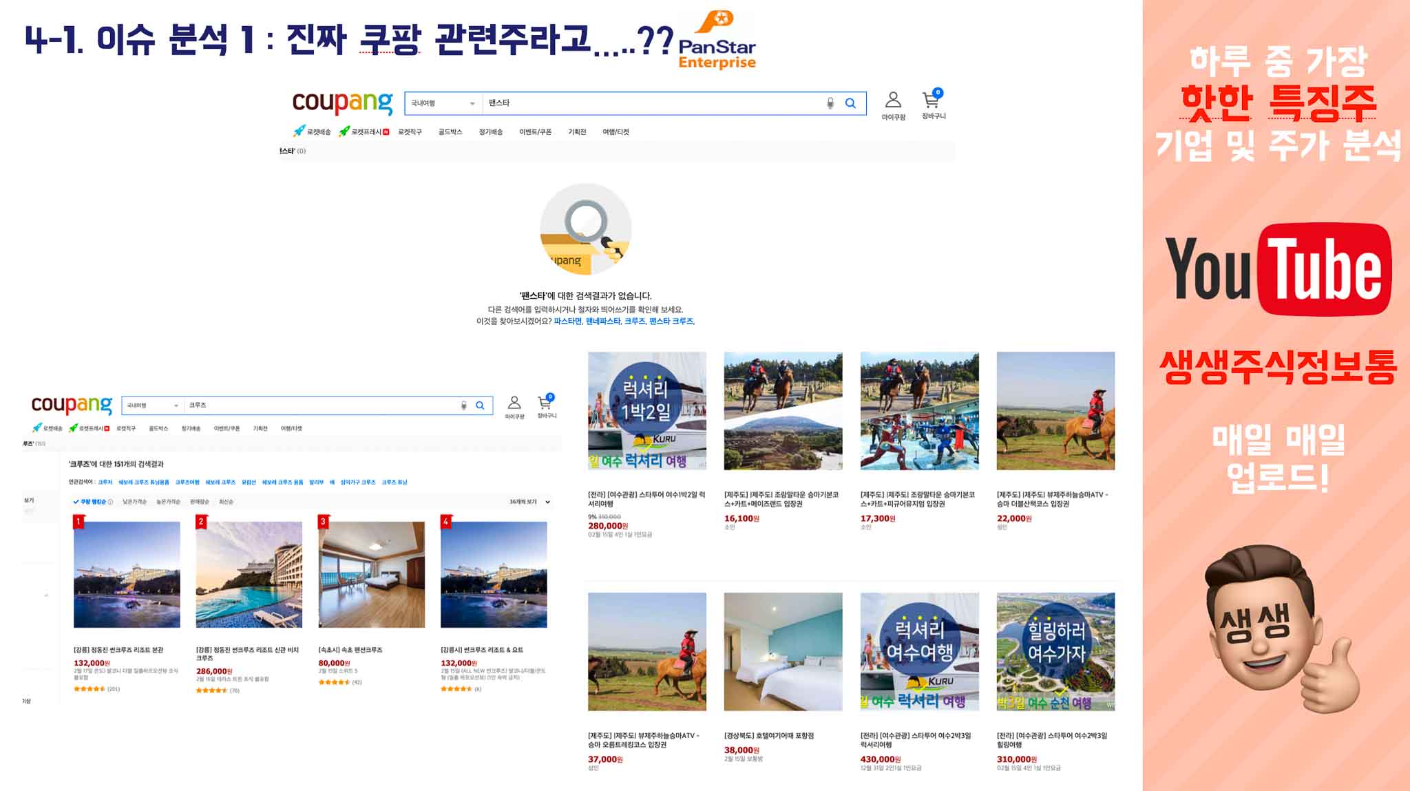 심지어 팬스타엔터프라이즈라는 기업도 여행상품을 쿠팡에 직접 공급해서 상승했다고 합니다.