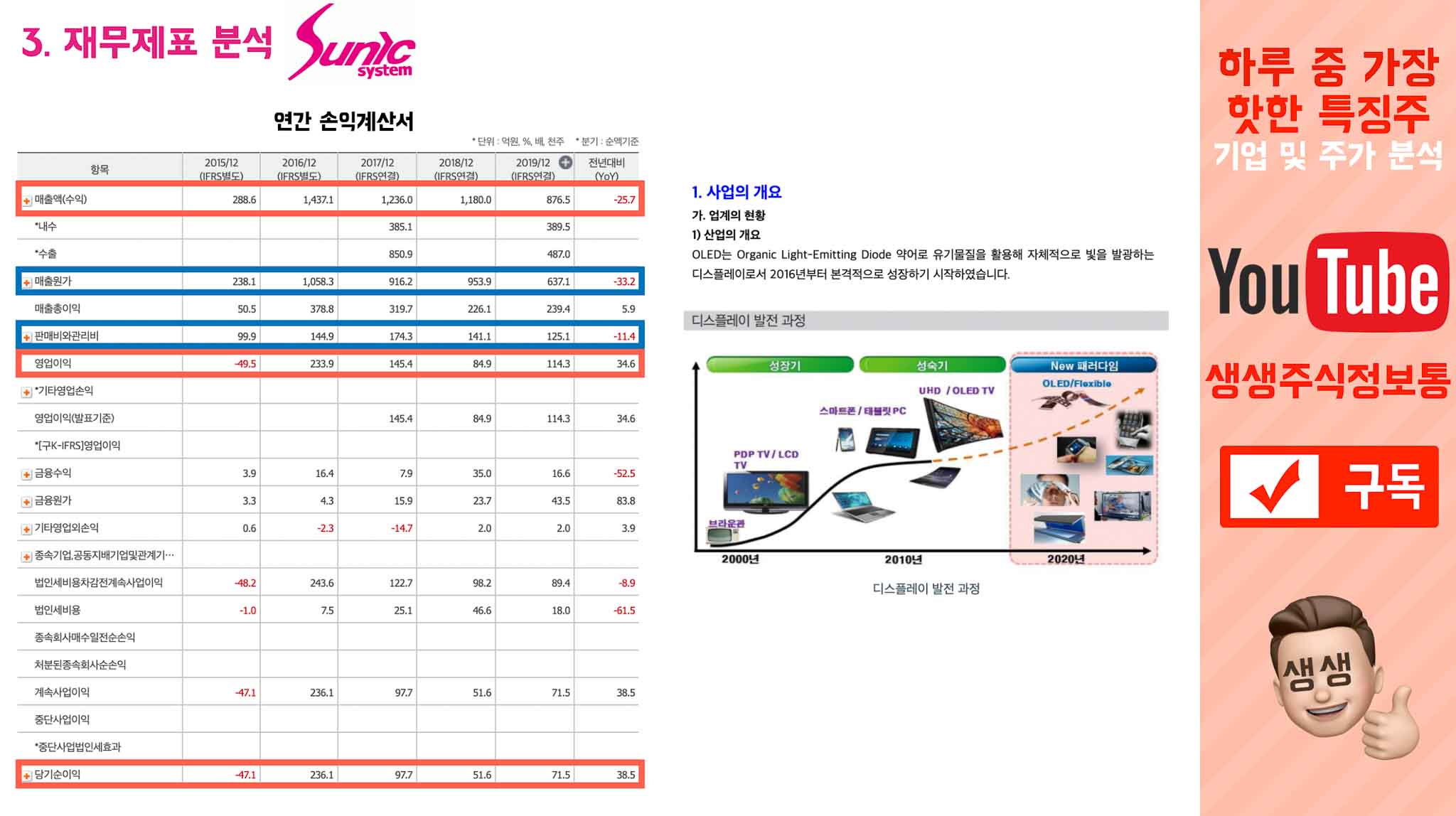 당시에는 OLED가 시작기로, 선익시스템의 OLED 증착장비 매출이 늘것이라고 전망했기 때문입니다.