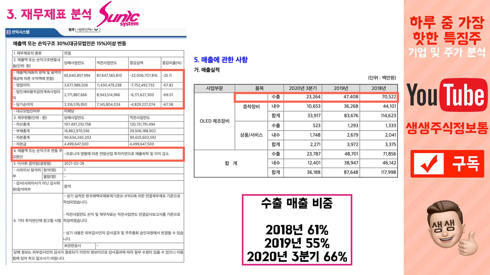 그리고 원래 선익시스템은 수출 비중이 높은데, 코로나 19의 영향을 어느정도 받을수밖에 없었습니다.
