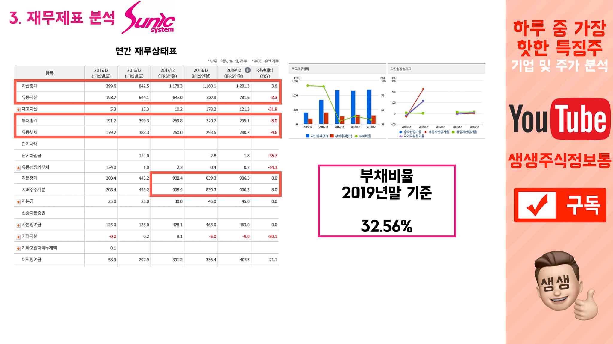 2017년에 선익시스템은 상장을 하면서 자본이 확 늘었고, 이 덕분에 부채비율을 엄청나게 줄일수 있었습니다.
