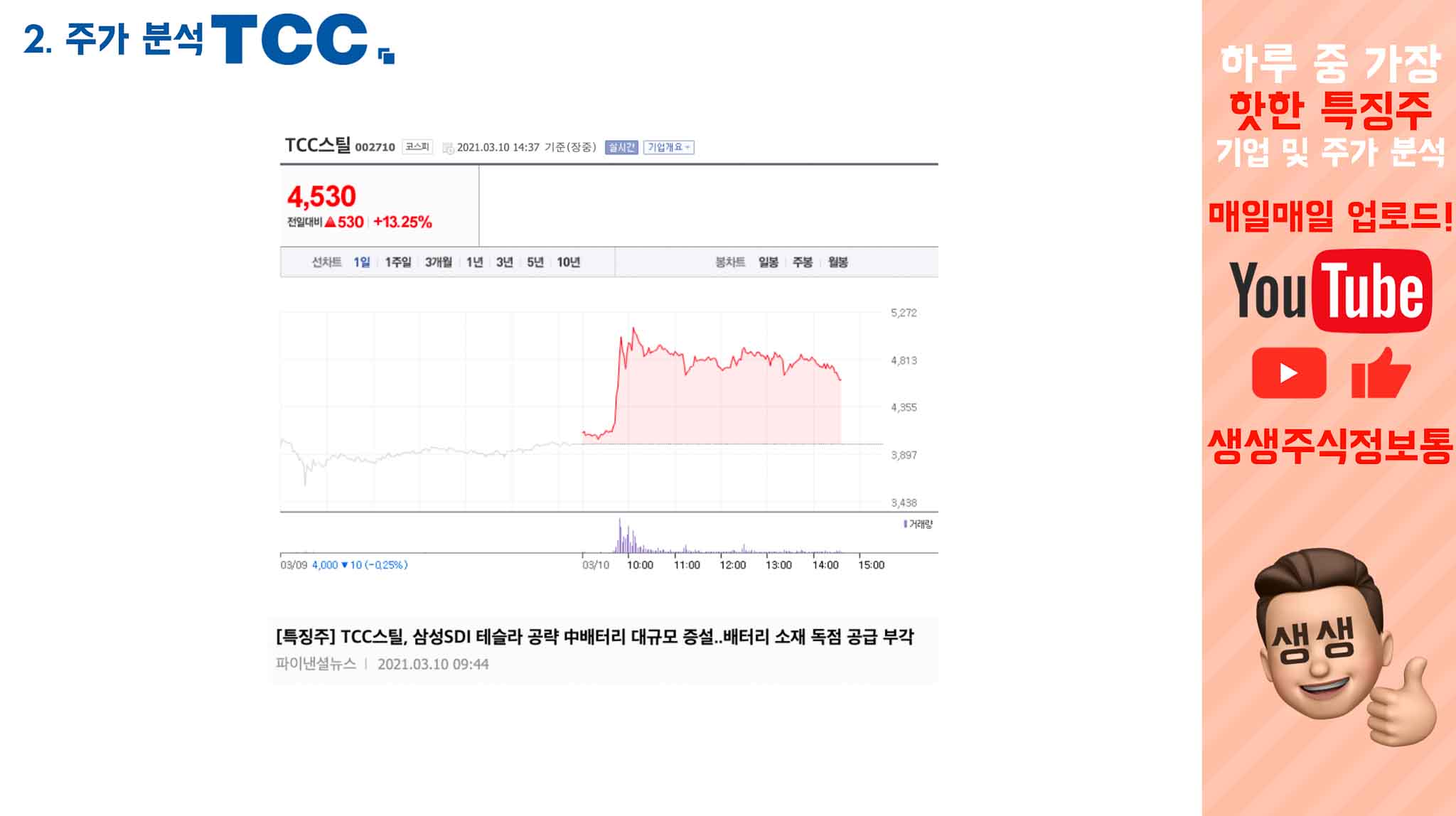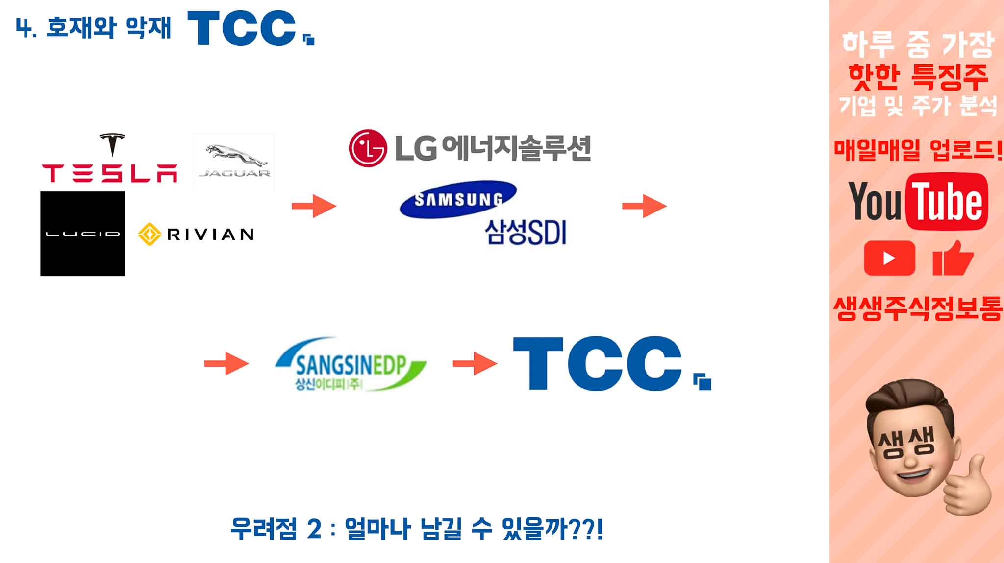 오늘은 TCC스틸과 테슬라, LG화학, 삼성SDI등의 연관성을 알아보고