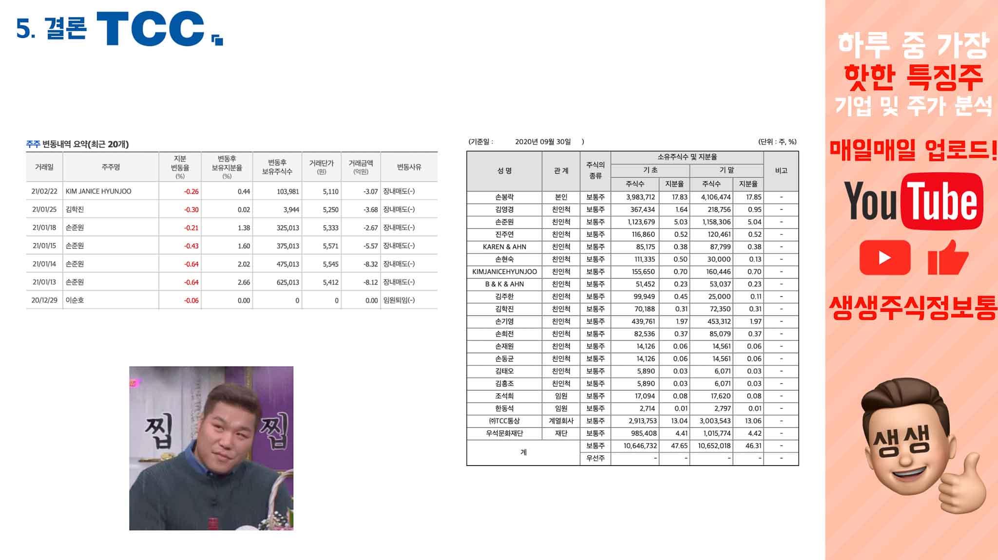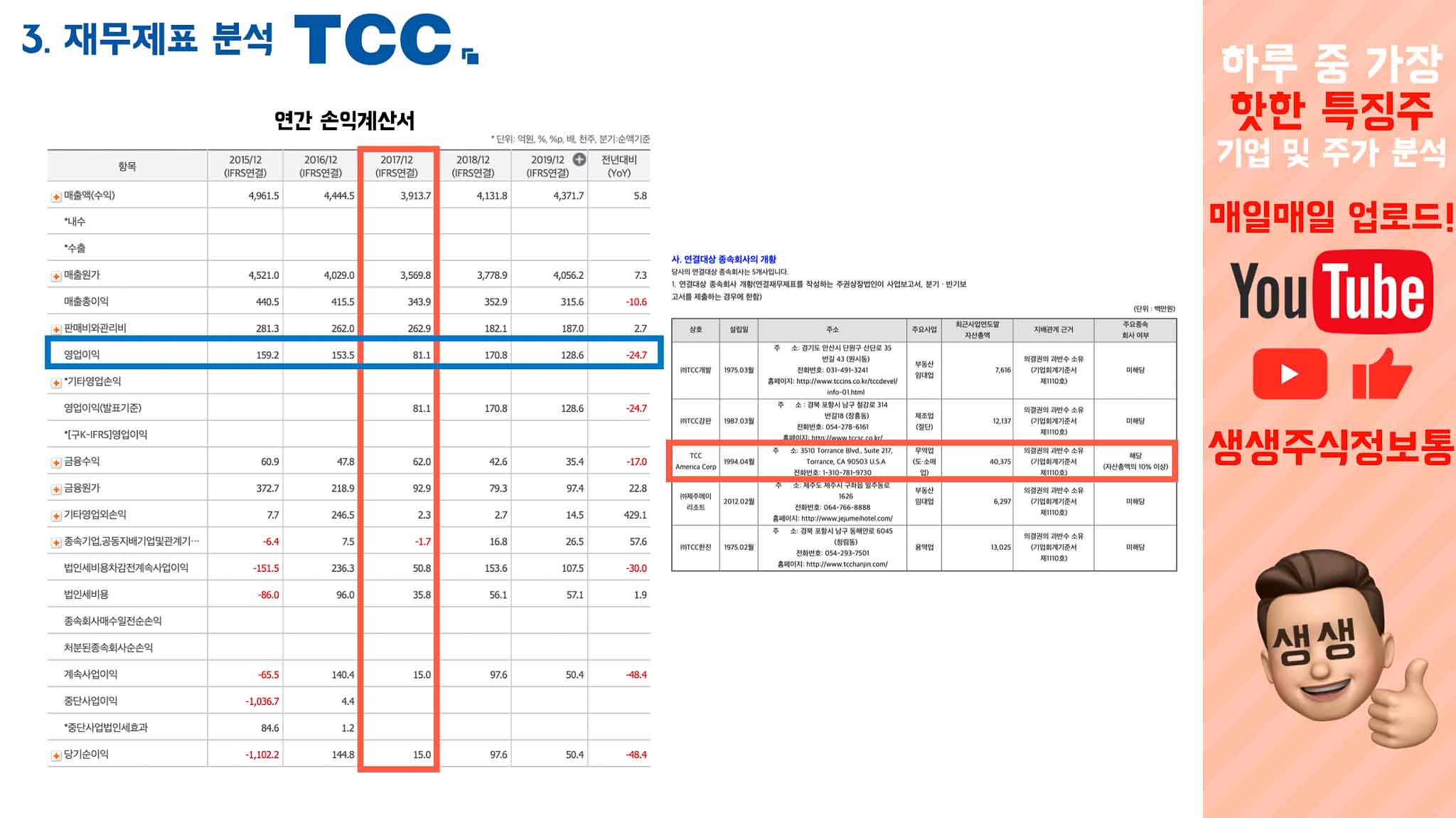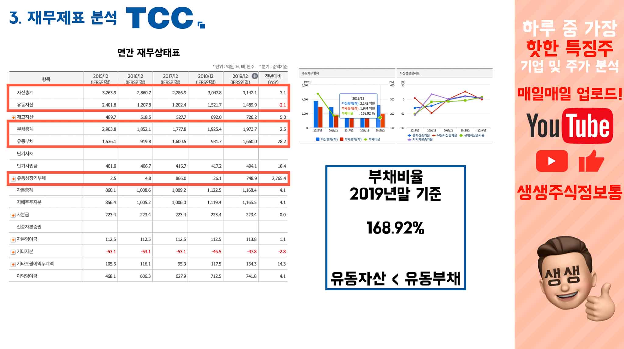 적어도 100억이상의 영업이익을 남겼던 TCC인데, 2020년에는 12억 이익입니다. 그래도 적자는 아니네요.
