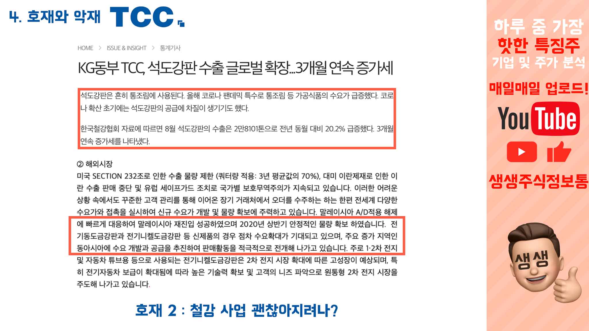 그리고 석도강판은 KG동부와 TCC스틸, 신화실업이 내수시장과 수출을 이끄는 3개 기업인데,