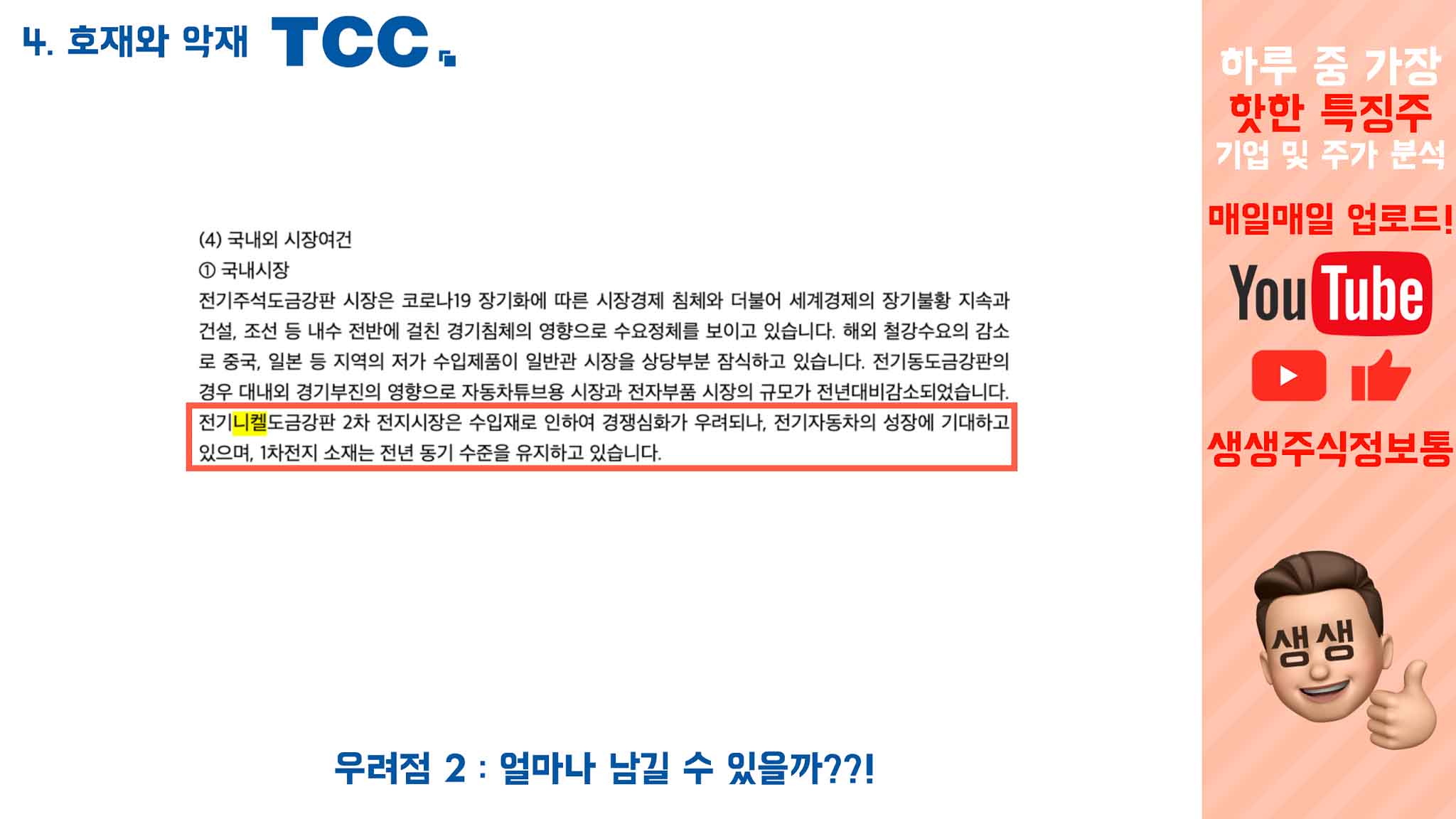 TCC스틸은 국내에서 유일하게 니켈도금강판을 만드는 회사인데, 옆에 기사의 밑 부분을 보면 니켈도금강판은 일본과 독일 등에서 전량수입했지만, TCC동양. 이건 TCC스틸 옛 이름입니다. 2019년에 사명을 바꿨습니다.