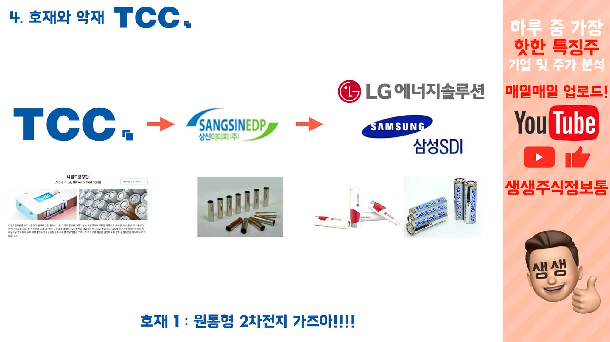 LG엔솔과 삼성SDI 원통형 배터리 소재 업체인 TCC스틸도 더 성장하지 않을까하는 기대감이 형성될 수 있습니다.