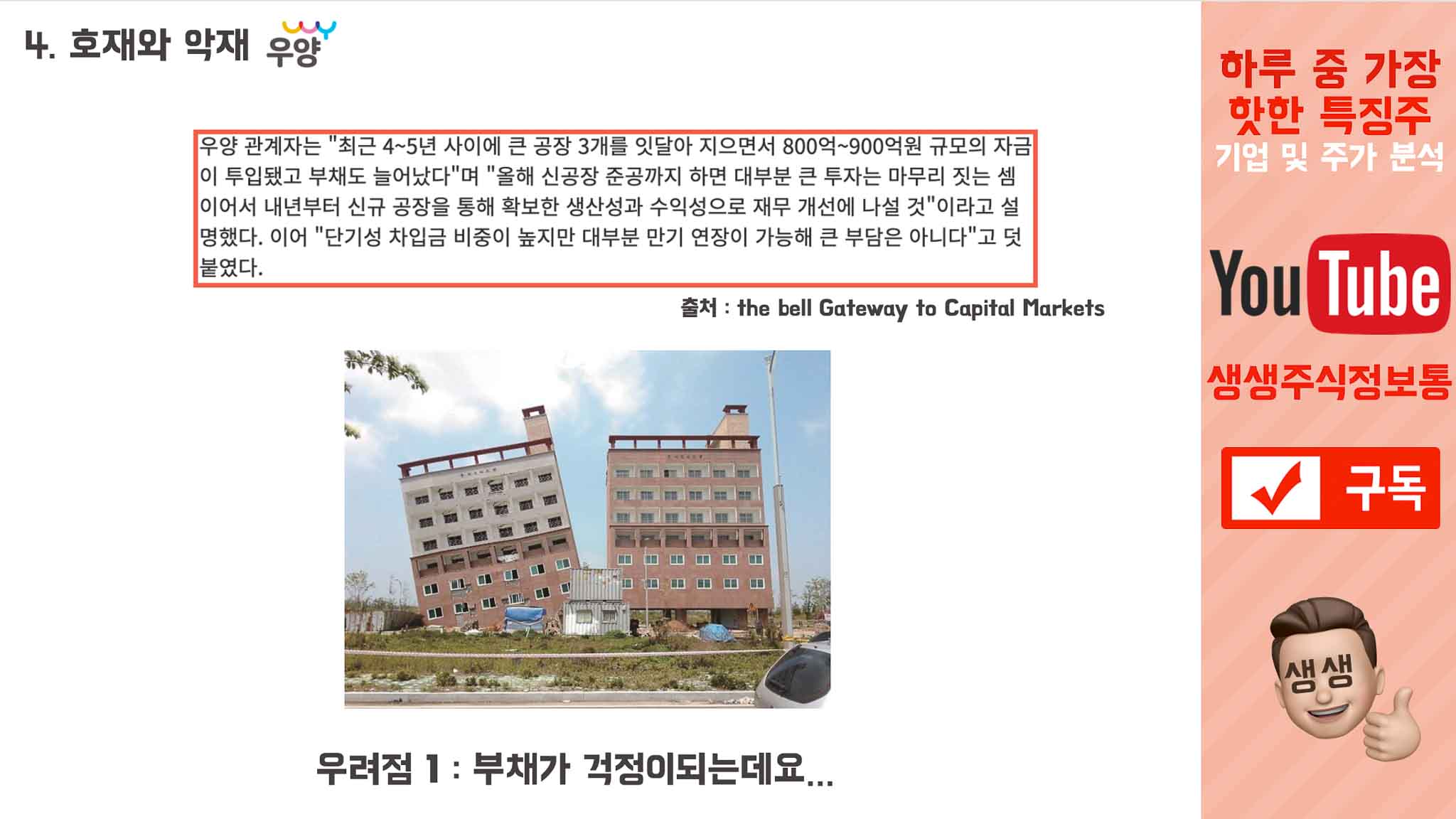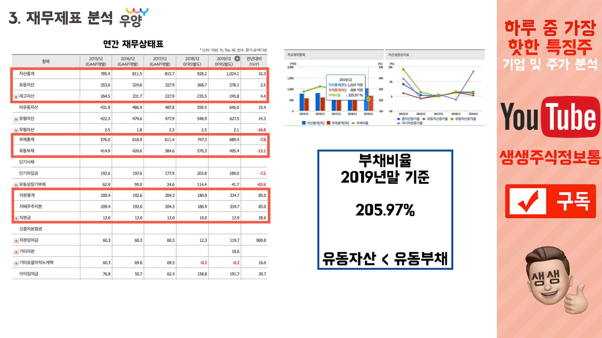 재무구조가 괜찮은 회사들도 많은데, 우양은 재무구조상 아직 완벽히 안정적인 상황은 아닙니다.