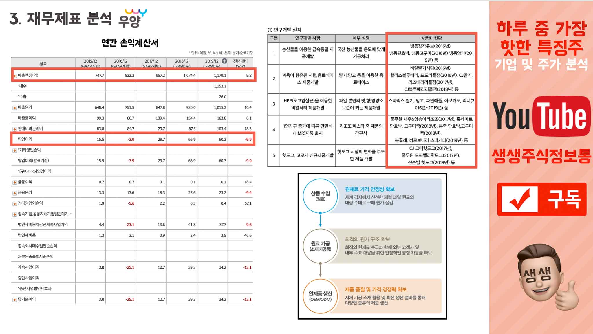 HMR시장의 성장이 기대되긴 하지만, HMR 시장은 대기업들도 많이 뛰어들고 있어 경쟁이 심화될 것인데, 그리고 우양은 기본적으로 OEM 기업이잖아요. 그래서 회사 특성상 고객사의 단가 인하 압력에 취약합니다.