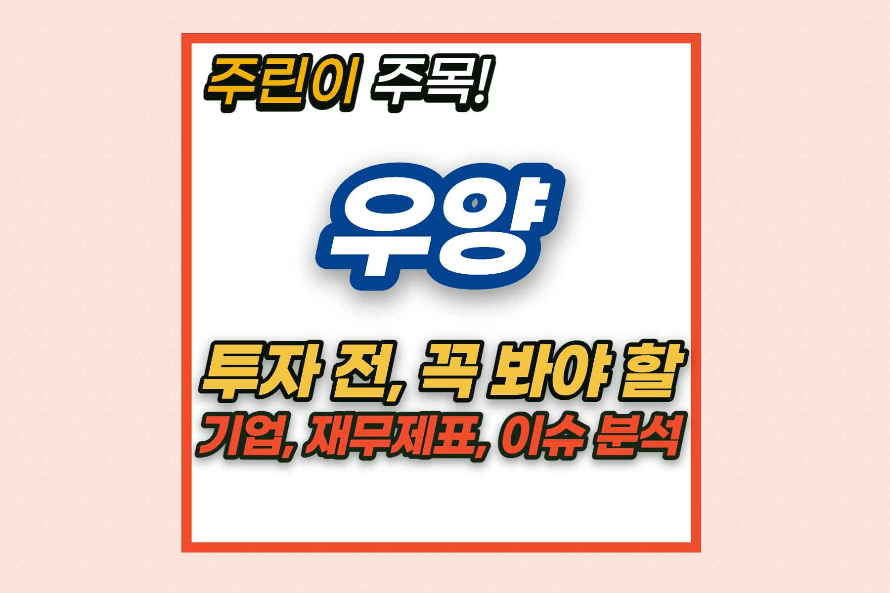 우양의 기업, 주가, 재무제표 그리고 호재와 악재 분석을 통해 자세하게 알아보도록 하겠습니다.
