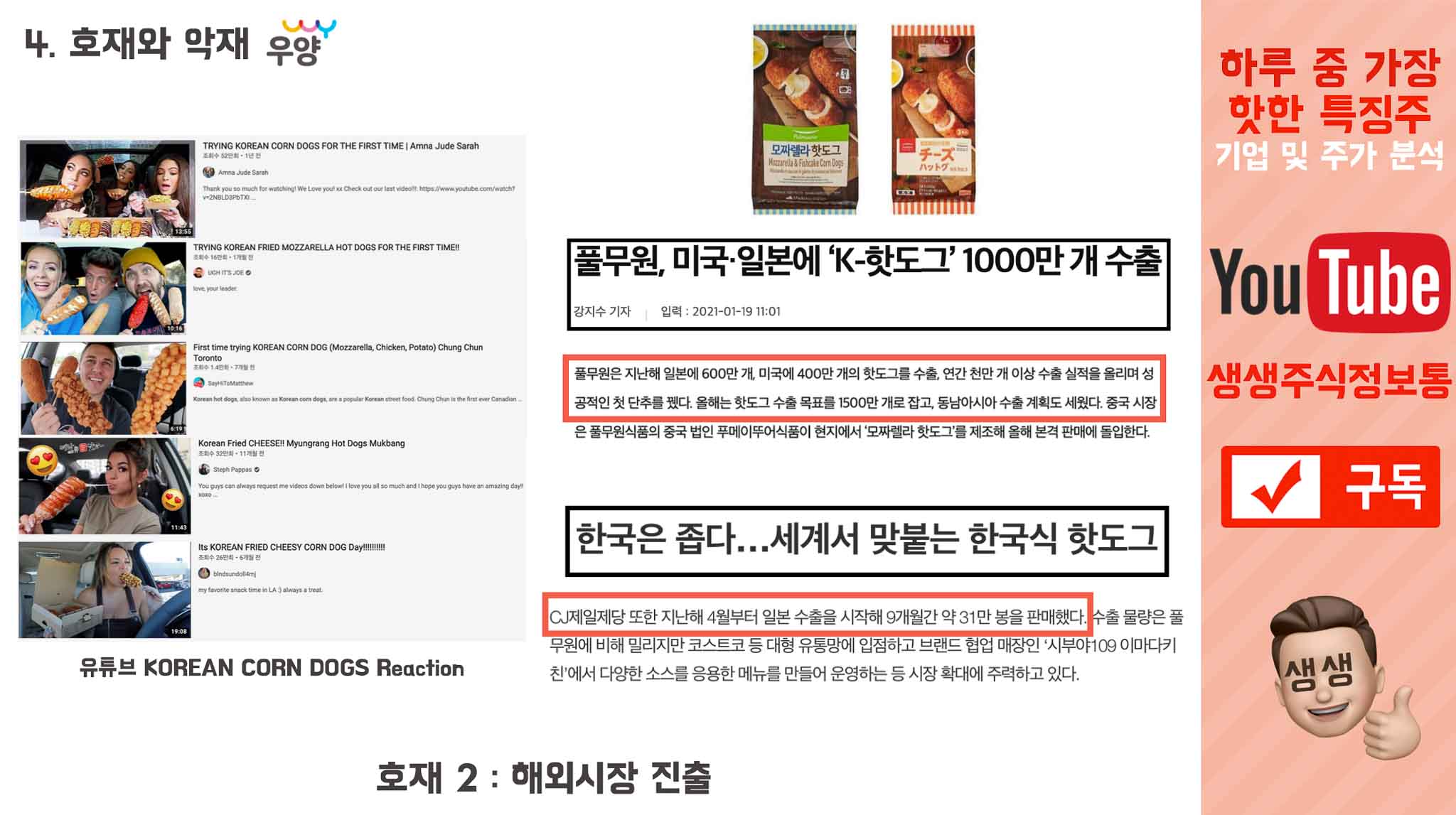 물론 회사측의 계획이긴 하지만, 그래도 풀무원과 CJ제일제당을 통해서 핫도그가 전세계로 나가고 있는만큼 우양에게는 호재로 작용할 것 같습니다.