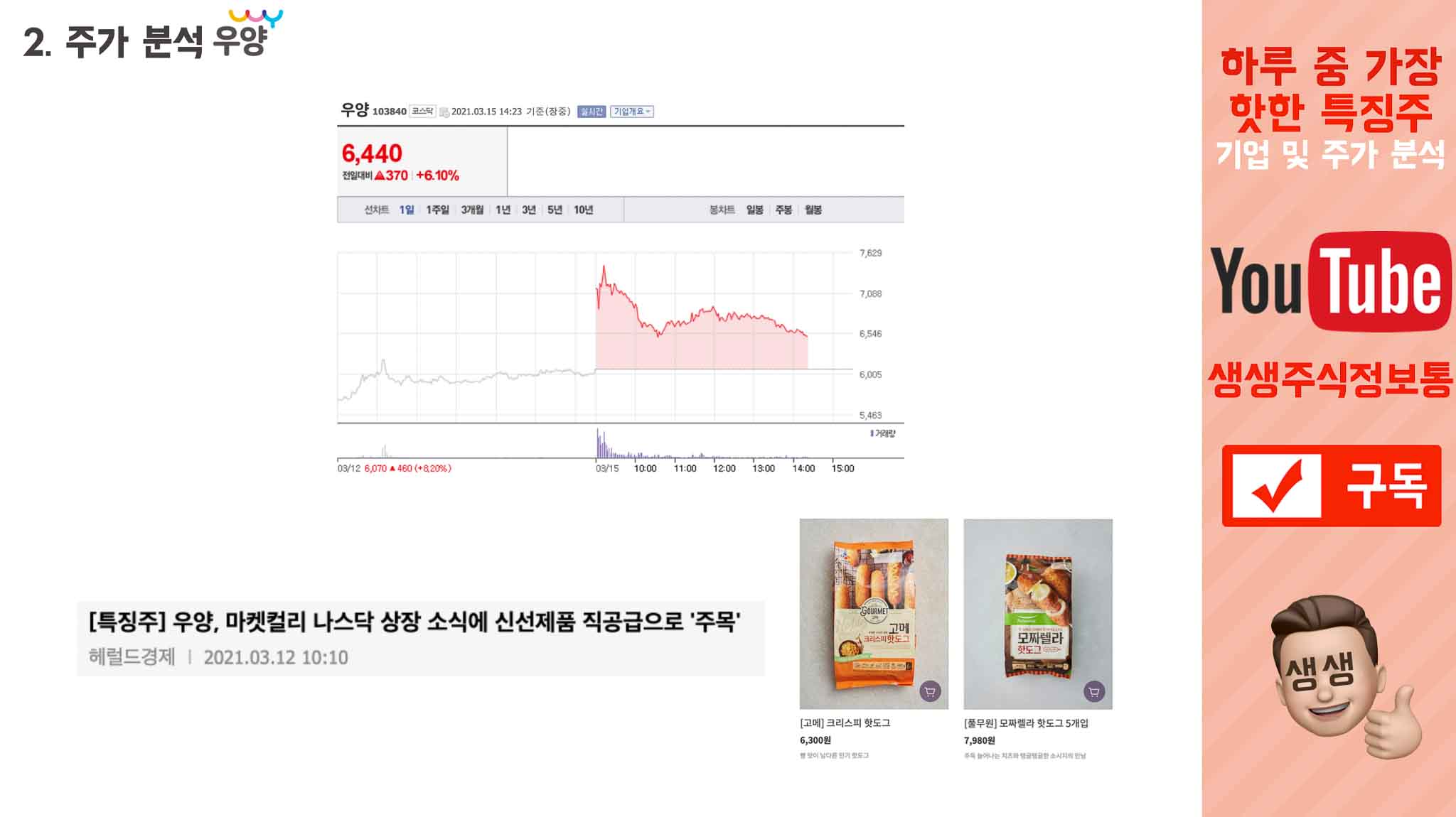 우양은 2021년 3월 15일 월요일, 마켓컬리 나스닥 상장 소식과 함께, 장 시작하면서 급등했습니다.