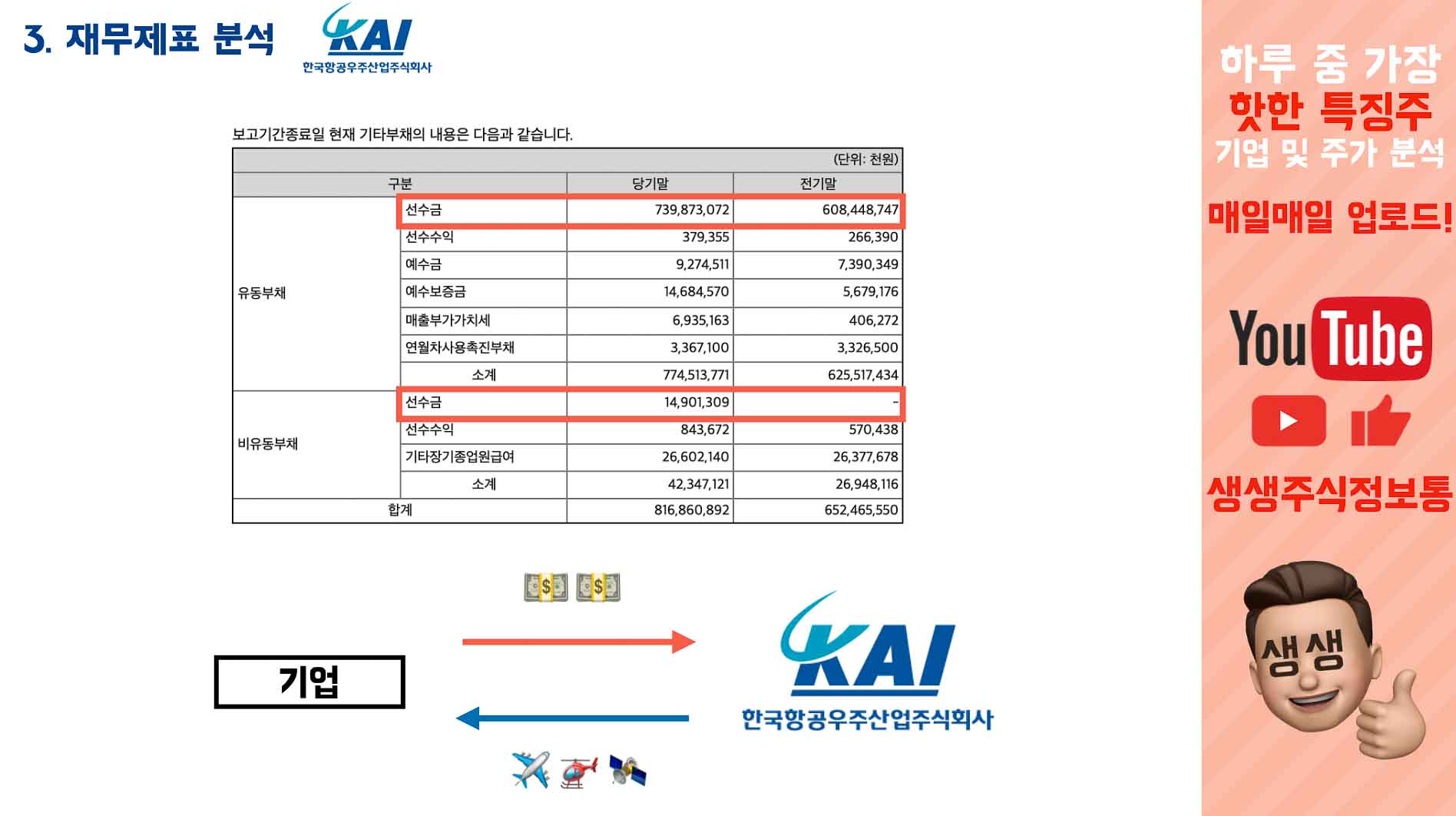 선수금은 어떠한 기업에서 어 우리 비행기나 헬기나 뭐 비행기 부품같은거 좀 줘! 하면서 계약을 하는데, 돈을 먼저 줘요.