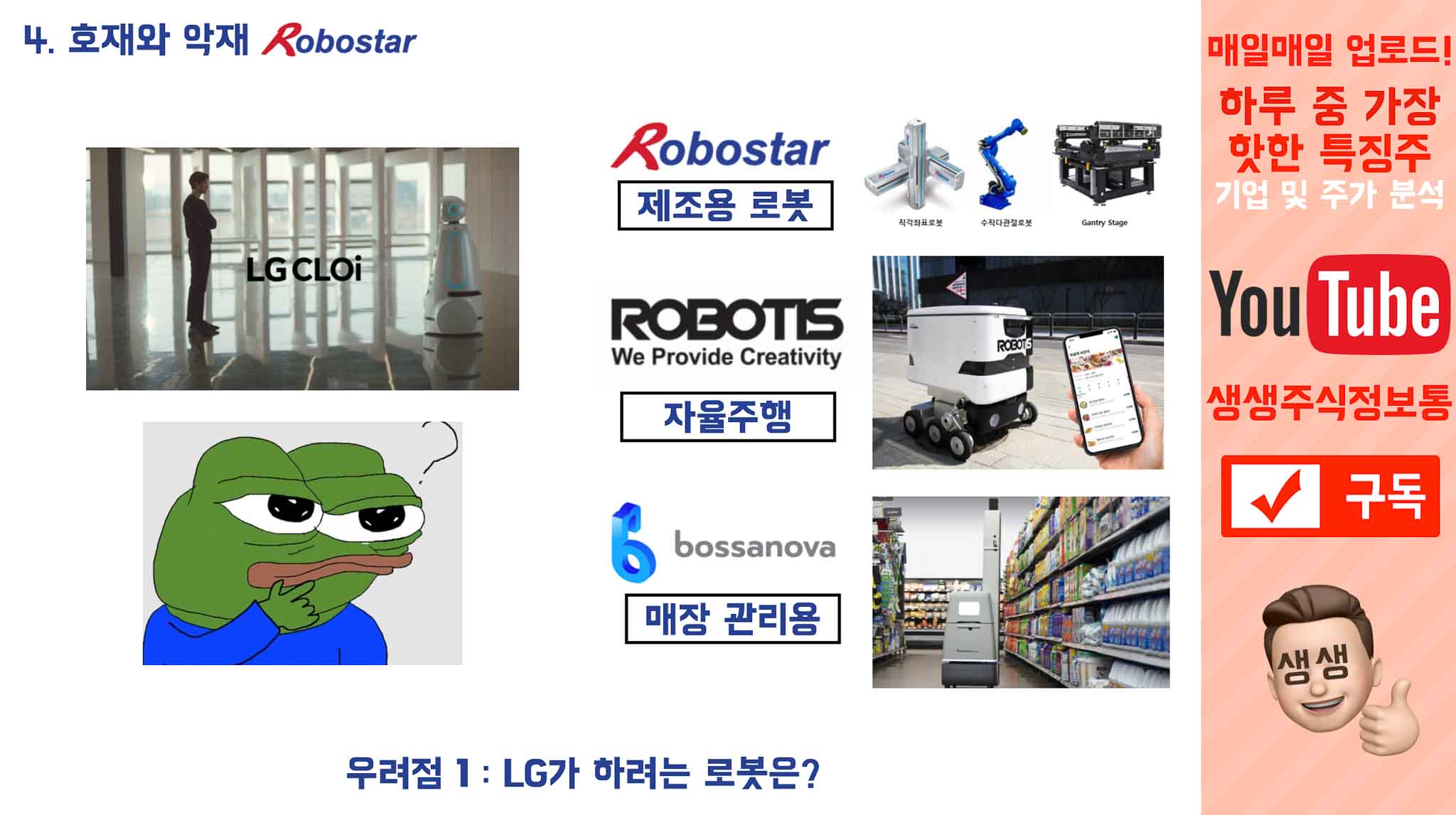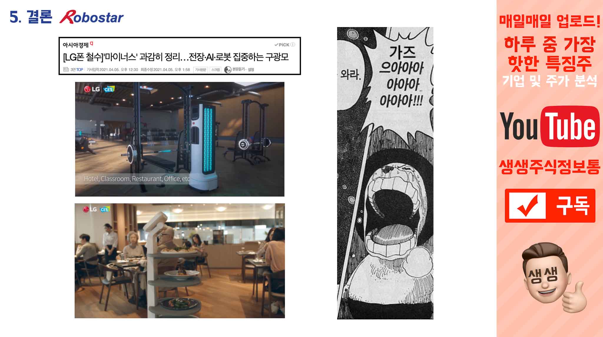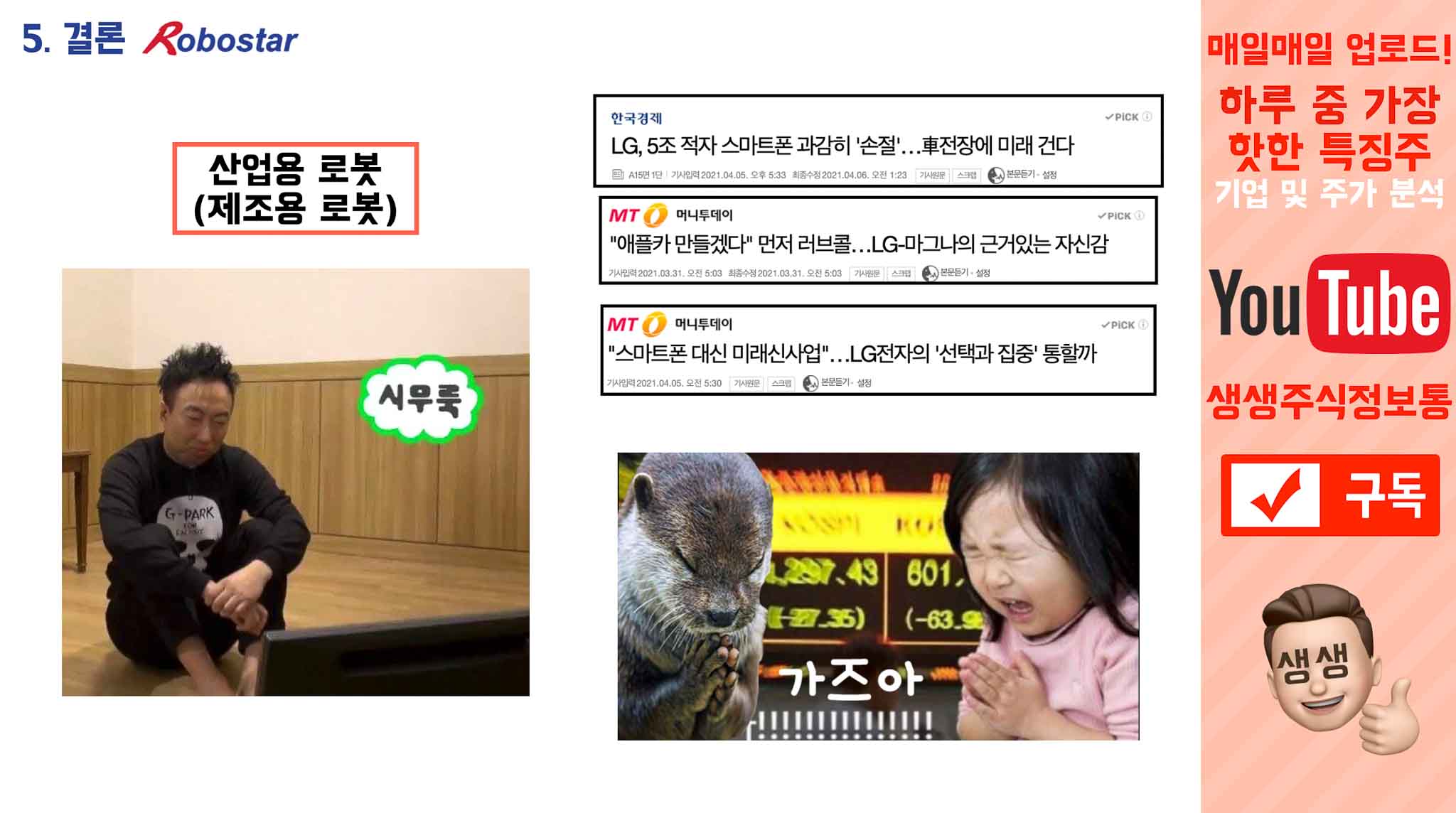 “어? 로봇? LG의 로봇계열사, 로보스타? 미쳤다 가즈아!!!!” 를 외치시고 계신거 같더라구요.