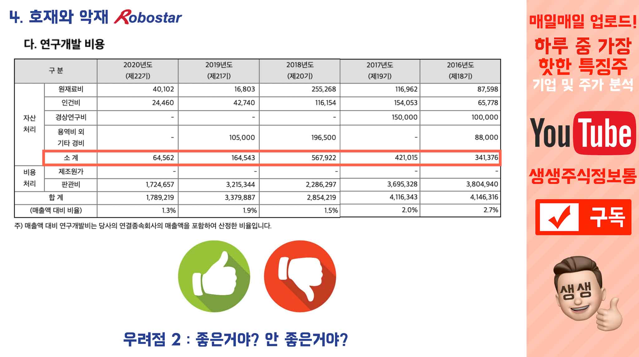 그런데?? 또 다르게 보면 연구개발비용이 해가 갈수록 점점점 떨어지고 있는것도 마음에 걸립니다.