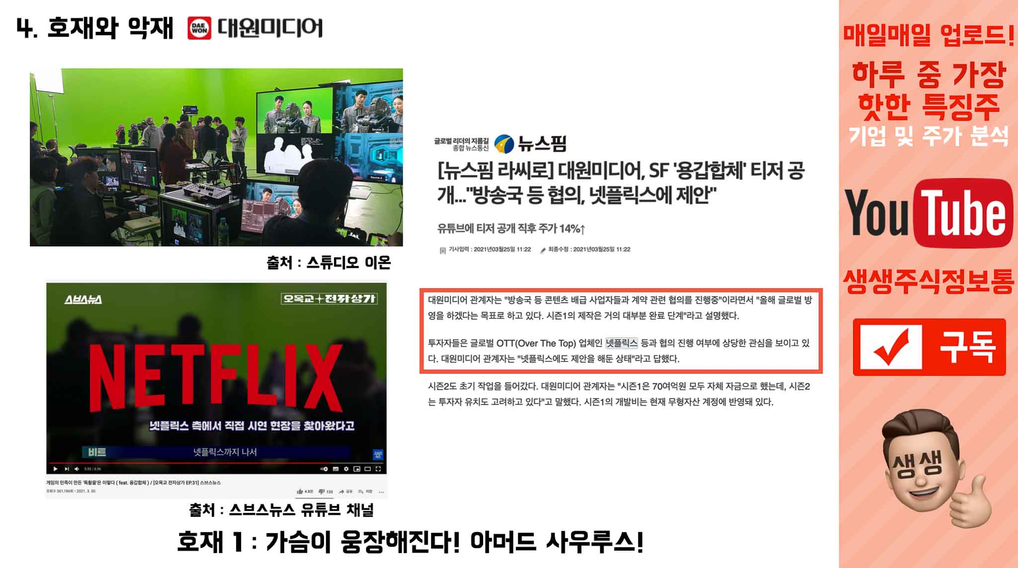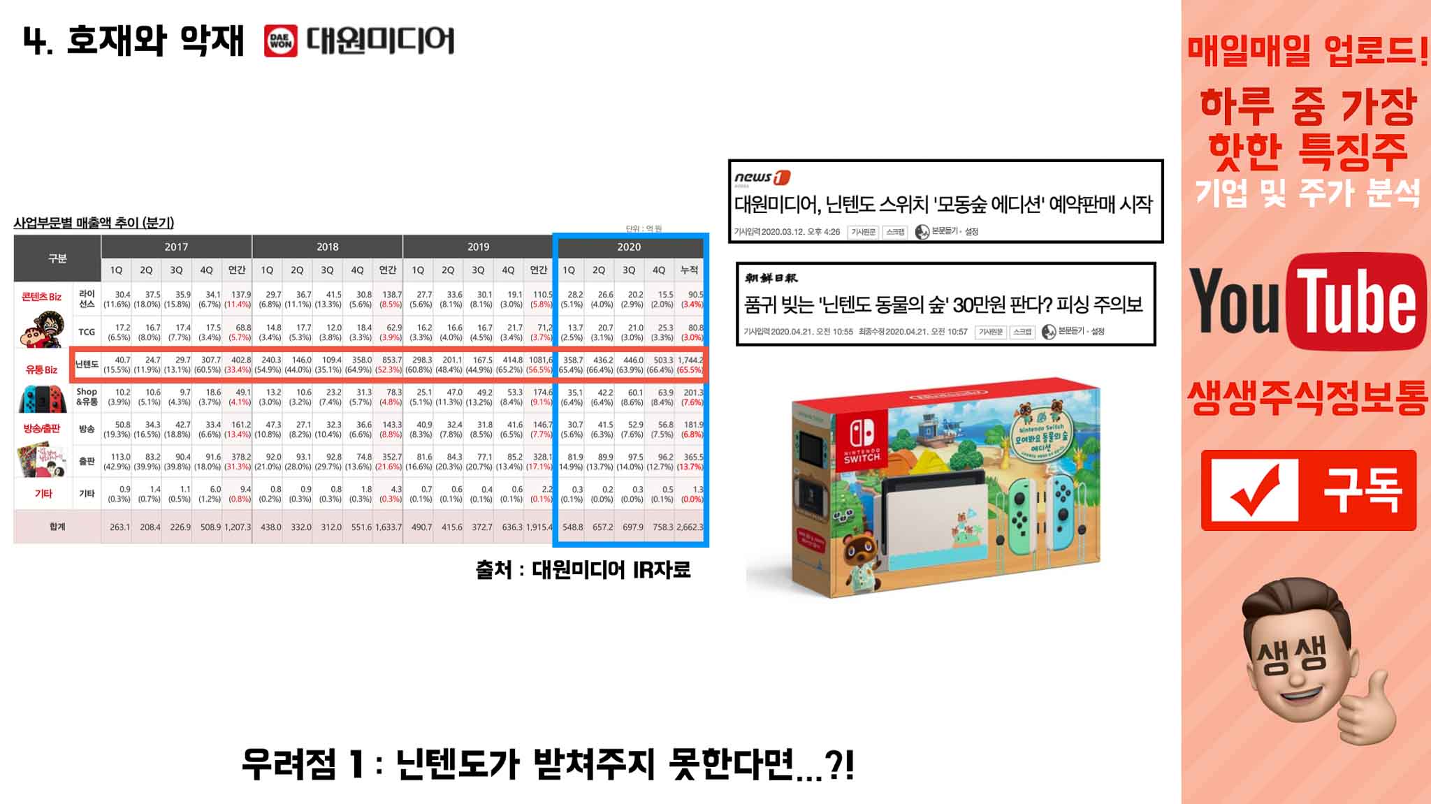 지금까지 대원미디어가 어떻게 흘러왔는지 봤다면, 호재와 악재를 통해 앞으로 어떻게 나아갈지 확인해보겠습니다.