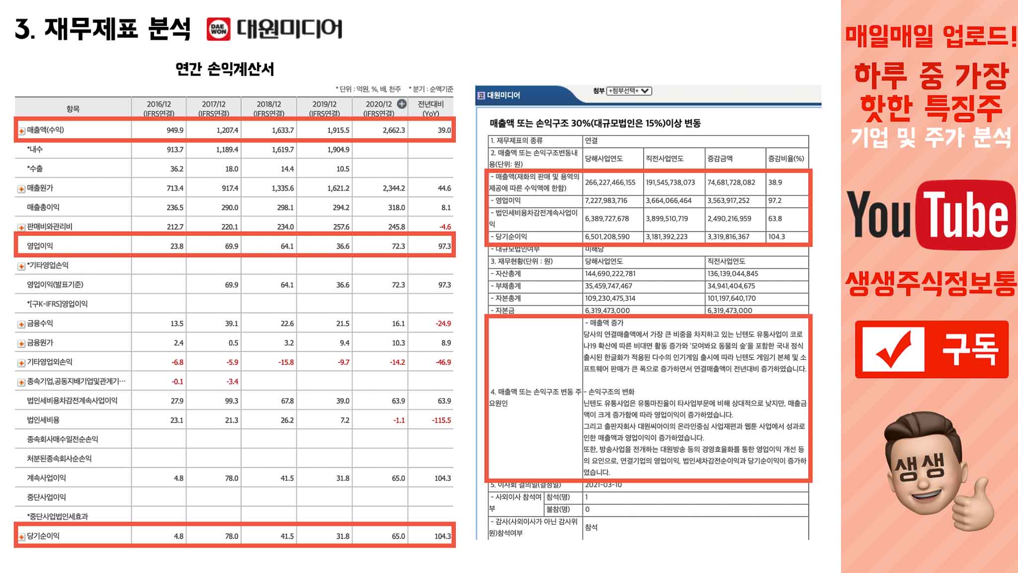 3. 재무제표 분석 : 대원미디어