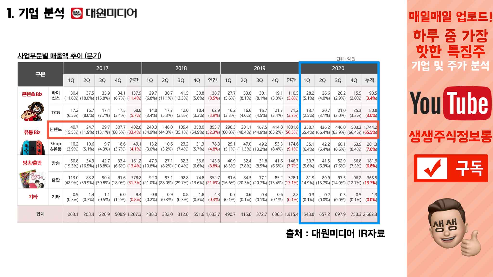 2020년에는 닌텐도에서 대박이 나서, 닌텐도만 1744억 매출을 냈는데 출판은 2017년과 비슷했습니다.