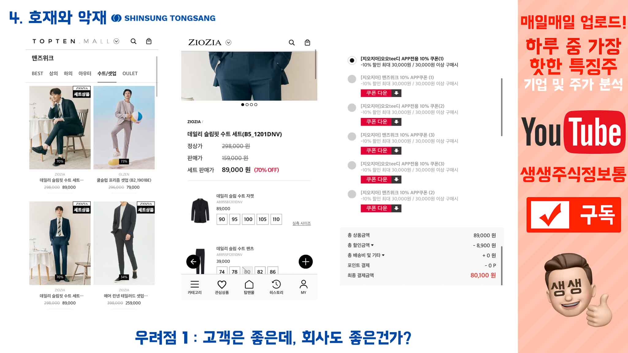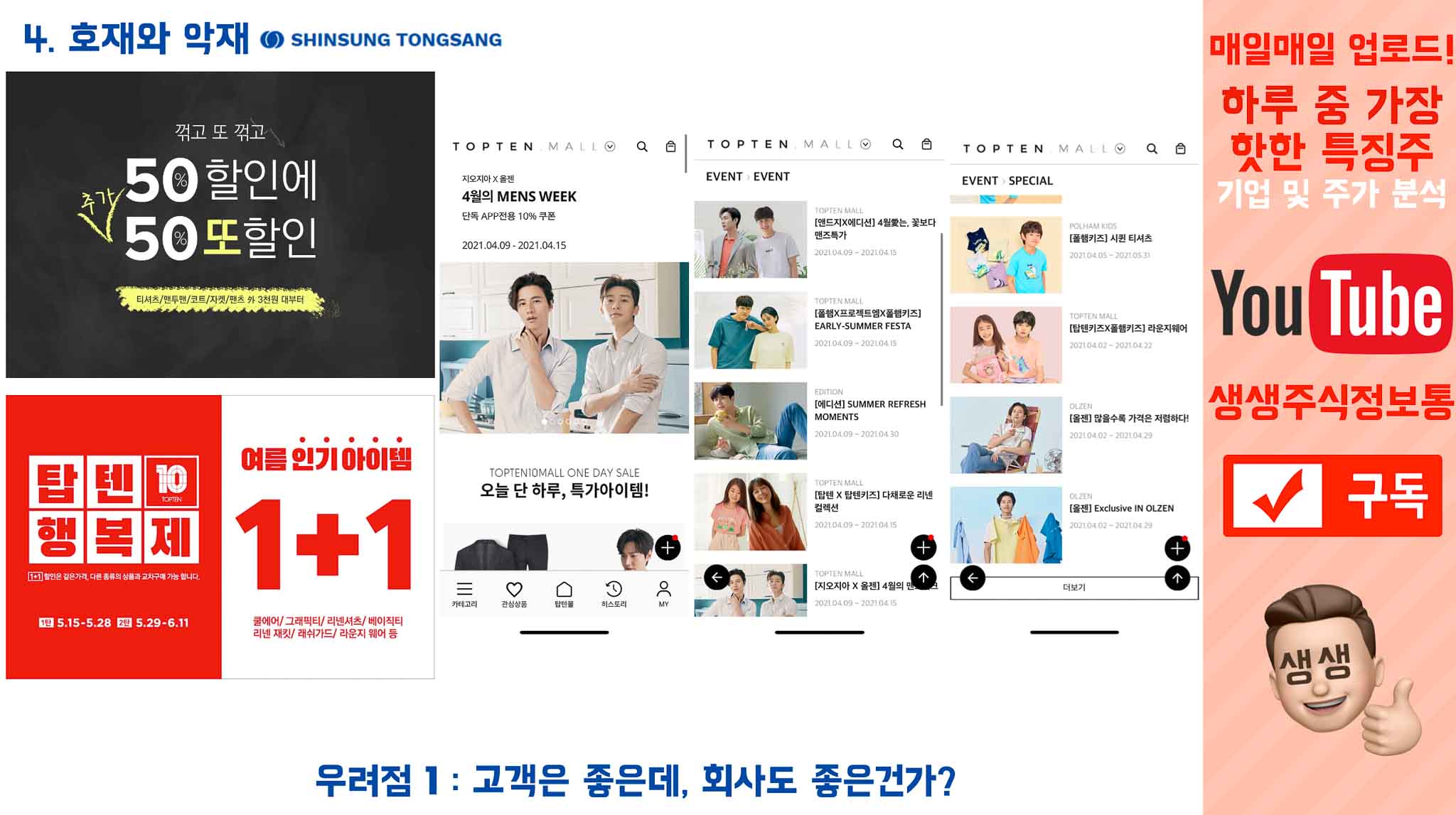 일본이 이상한 헛짓거리를 계속 하고 있고, 신성통상의 탑텐은 유니클로 대체재로 자리를 잡고 있는 것 같습니다.
