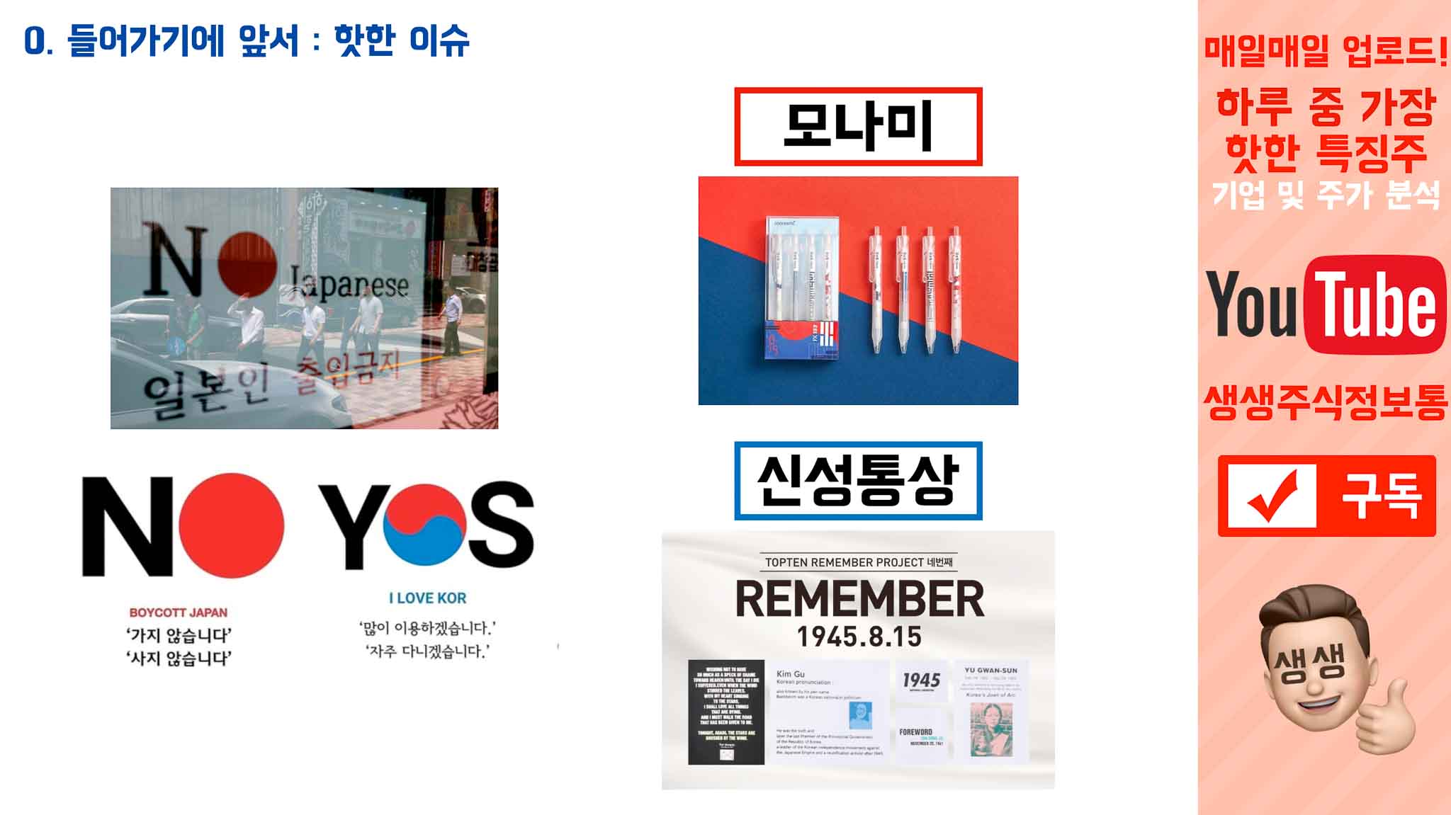 일본 불매 운동에 반사이익을 본 여러 기업이 있는데, 보통은 애국테마주라고 부르고 있습니다.