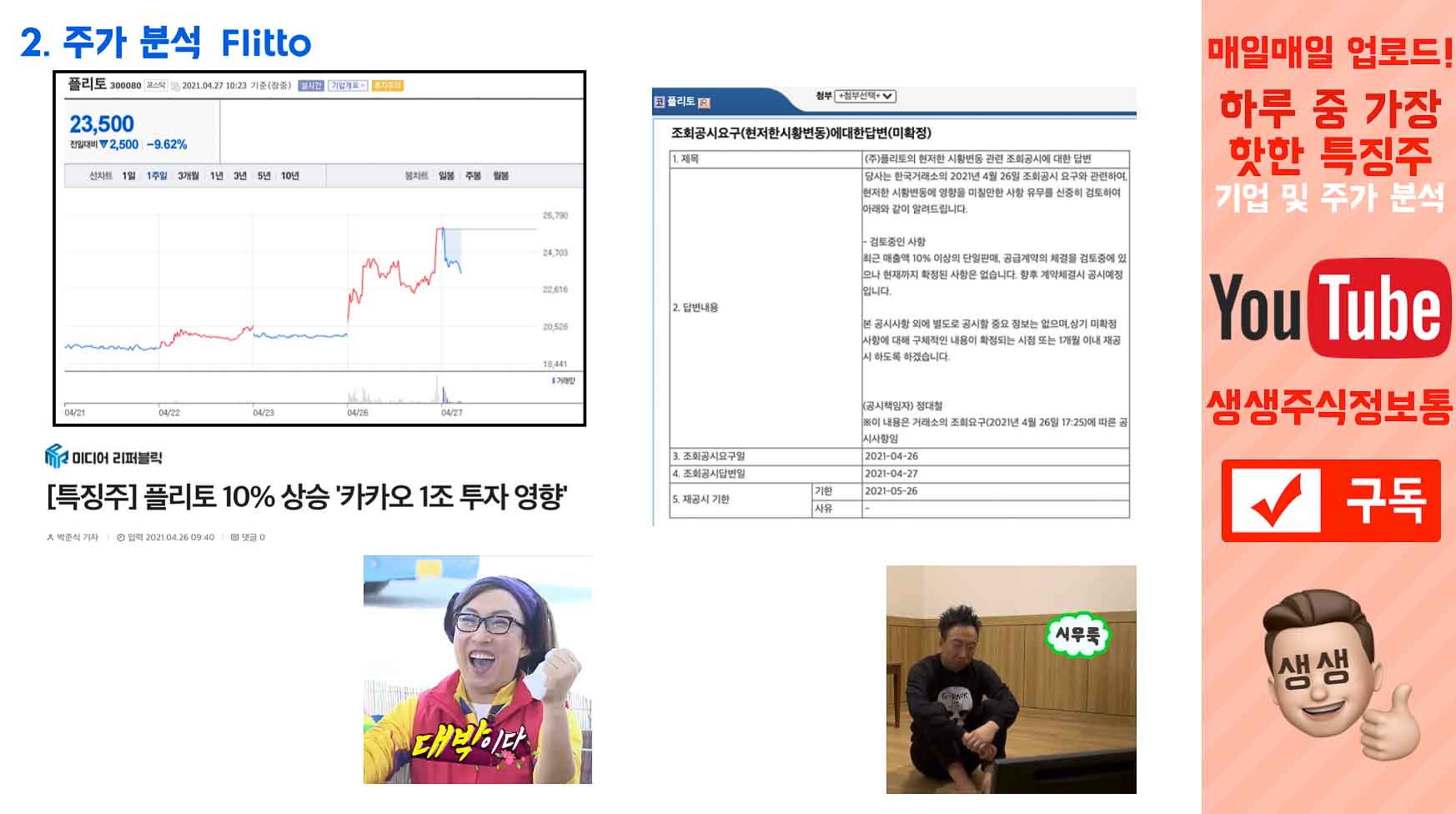 2021년 4월 26일, 오후장에 급하게 상한가를 찍으며 이목을 집중 시켰던 플리토,