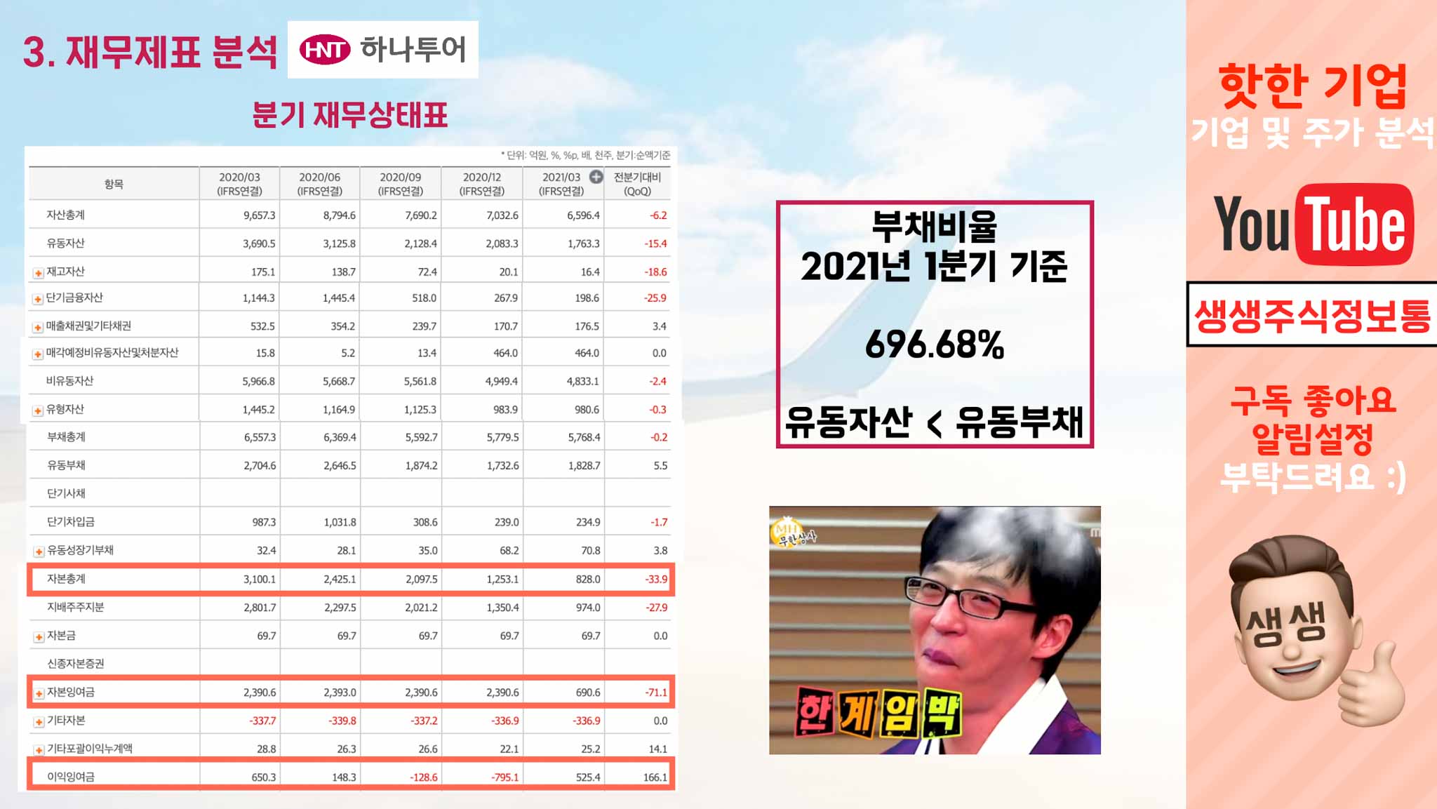 이 와중에 영업도 계속 적자인 상태로 이어지다보니, 부채비율은 2021년 1분기 기준으로 696.68%. 정말 말도 안되는 수치가 되었습니다.