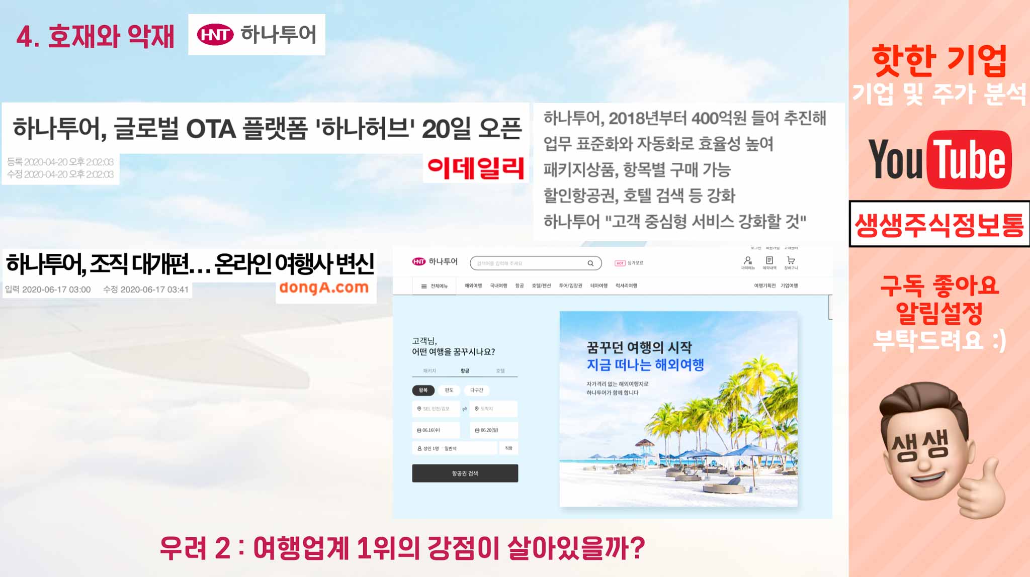 지금까지 하나투어의 상황을 살펴봤다면, 이제는 호재와 악재들을 통해서 앞으로 주가가 어떻게 될지 분석해보겠습니다.