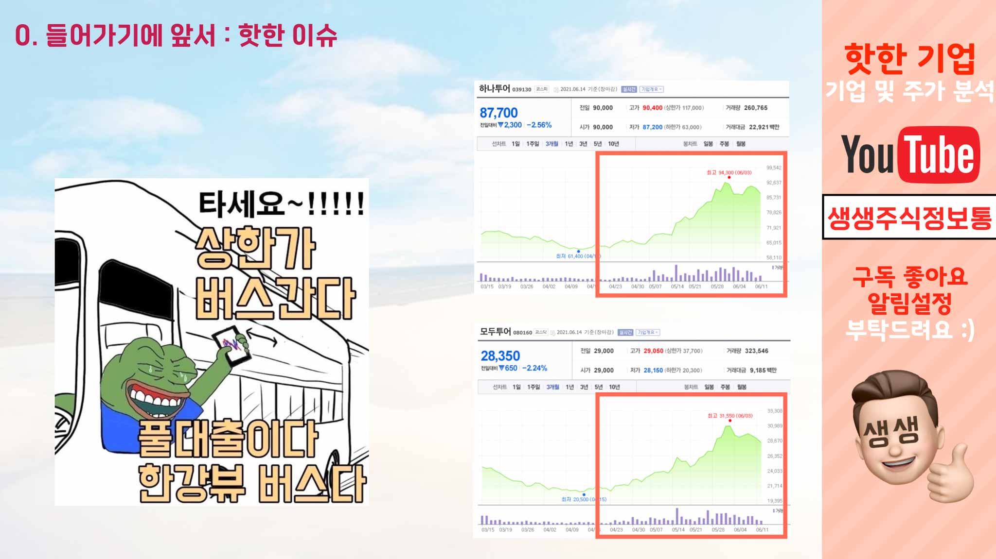 "코로나 백신 시작! 코로나 끝나면 뭐가 뜰까? 당연히 여행이겠지? 여행 업계… 음.. 보자… 그래 1위는 하나투어지!!!"