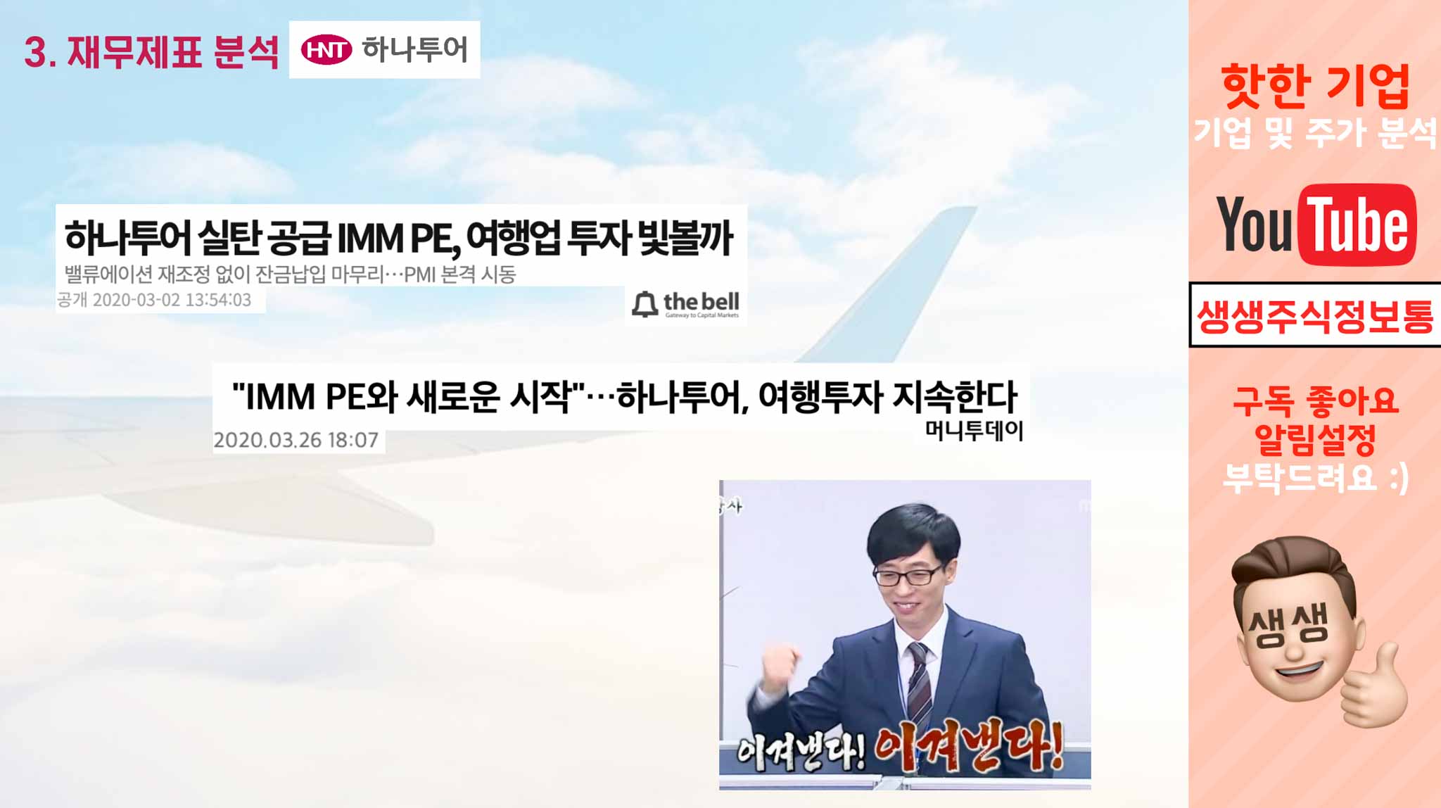하나투어는, 2020년 3월 사모펀드 운용사 IMM 프라이빗이쿼티가 제3자 배정 유상증자를 통해 최대주주로 들어오면서, 한번 수혈을 받았습니다.