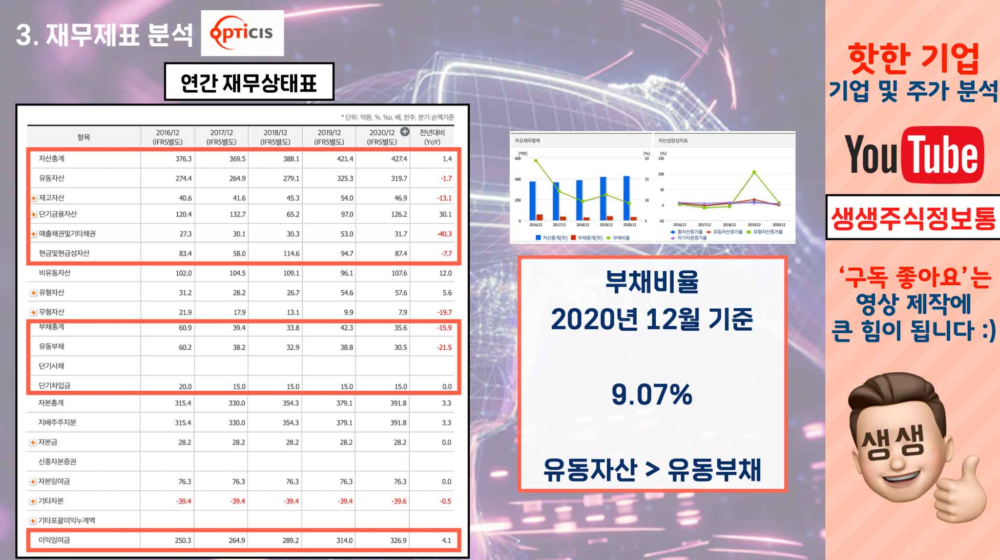 지금까지 옵티시스의 기업, 주가, 재무제표 분석을 통해서 회사아 어떻게 사업을 이어왔는지, 그리고 투자해도 되는 안전한 회사인지에 대해서 알아봤는데요.