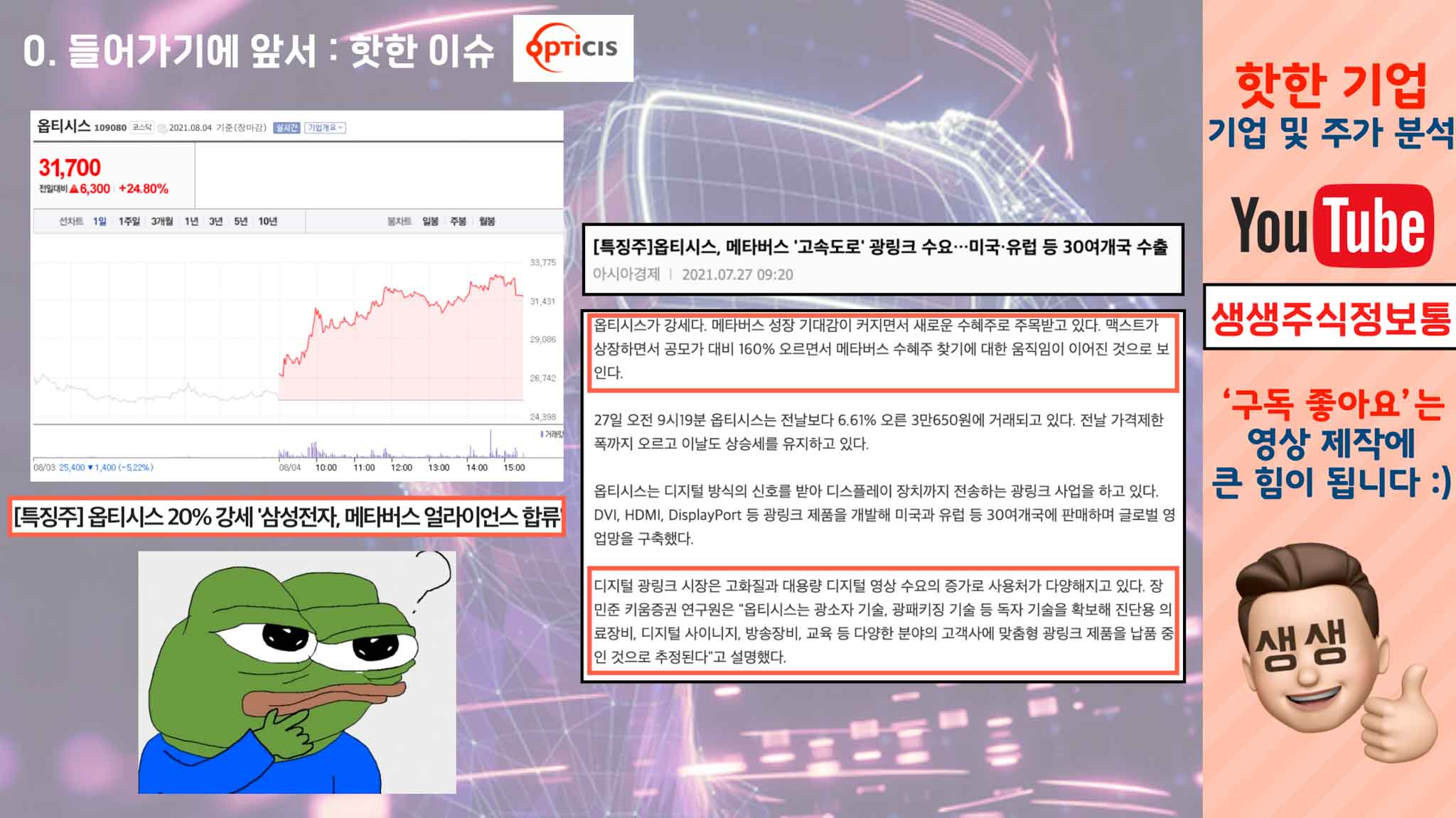 옵티시스는 광링크 제품을 판매하는 기업으로 메타버스 수혜주 아니냐? 하는 얘기가 많았습니다.